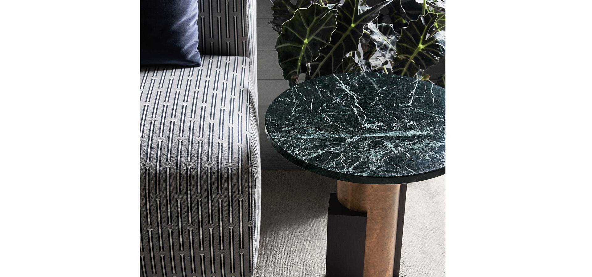 Verde Alpi, Calacatta Vagli Oro, or Nero Marquinia marble top coffee table. The construction is hand-burnished brass with black open-pore lacquered timber pieces.