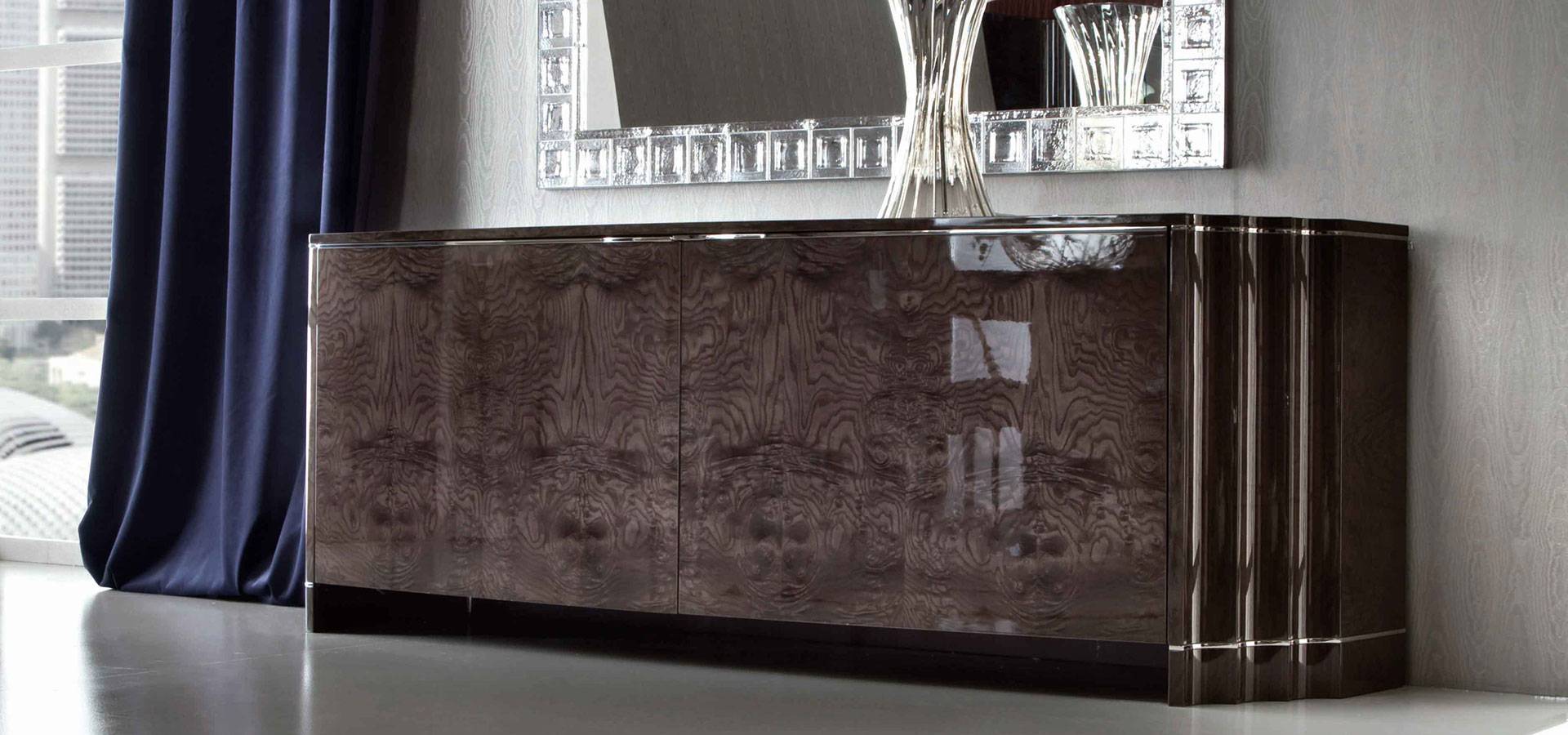 2 door buffet with a high gloss polyester finish and a blend of moka japanese tamo burl veneer.