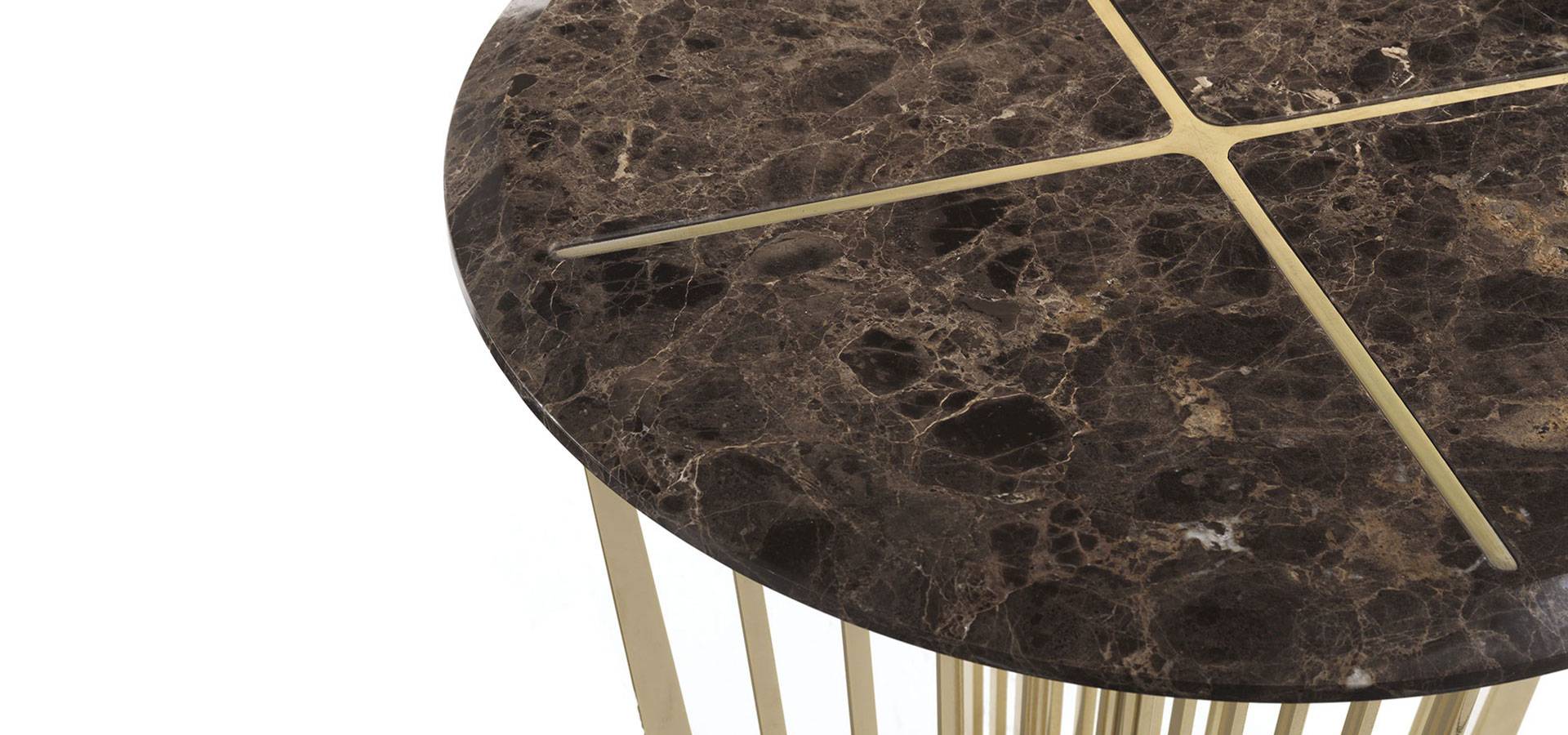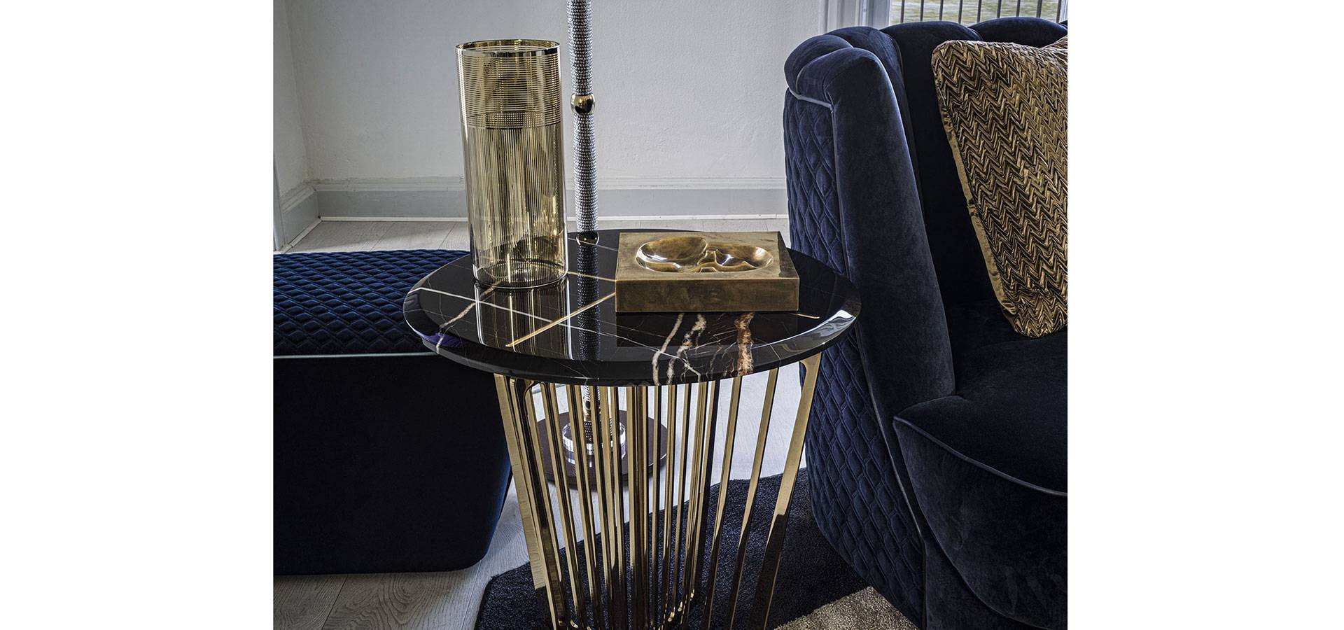 The Alfieri coffee table combines lightness and solidity, an oxymoron that works. A vertical pattern distinguishes this metal foundation, which alternates solids and voids. Marble, a valuable and refined material, is used for the top, which comes in various sizes. The inlay on the top echoes the lines of the base creating a visual illusion of continuity, which creates an unexpected final result. The Alfieri coffee table's elegant and polished design effortlessly decorates both the living and sleeping rooms.