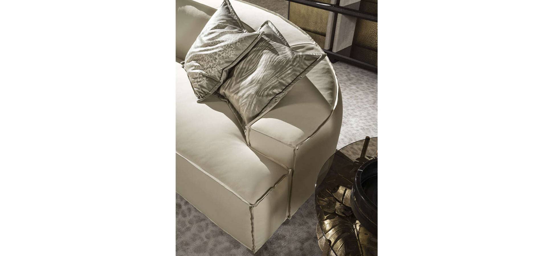 The flowing lines of the sofa, which make reference to organic and natural shapes, reaffirm the word Assal's power to take us to the wild areas that have always served as an inspiration for Roberto Cavalli's world. Assal is the name of an African lake in Djibouti. a reference that is now lighter and more sensitive, assisting in the transformation of the living space into a warm and suggestive residential setting.