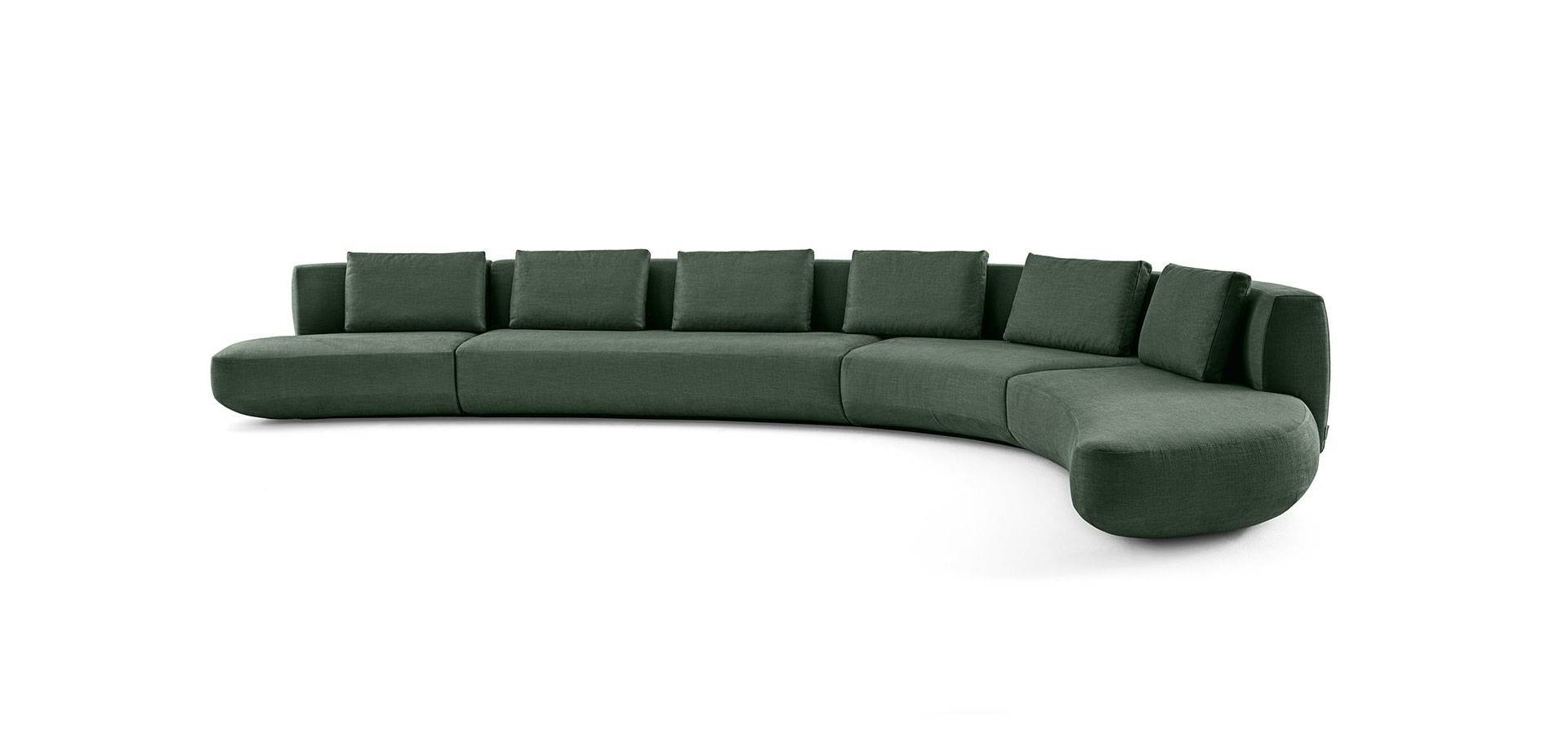 Internal wood and derivatives construction for modular sofa. Padded with fireproof polyester fiber and non-deformable polyurethane foam of various densities (CAL117). MDF mass base in black. Upholstery in the samples' hues is available in fabric or leather. Except in Cat. L1, L2, and customer/COL leather, everything is completely detachable. The back cushions are made of polyester fiber. On request, polyester fiber decorative cushions are available.