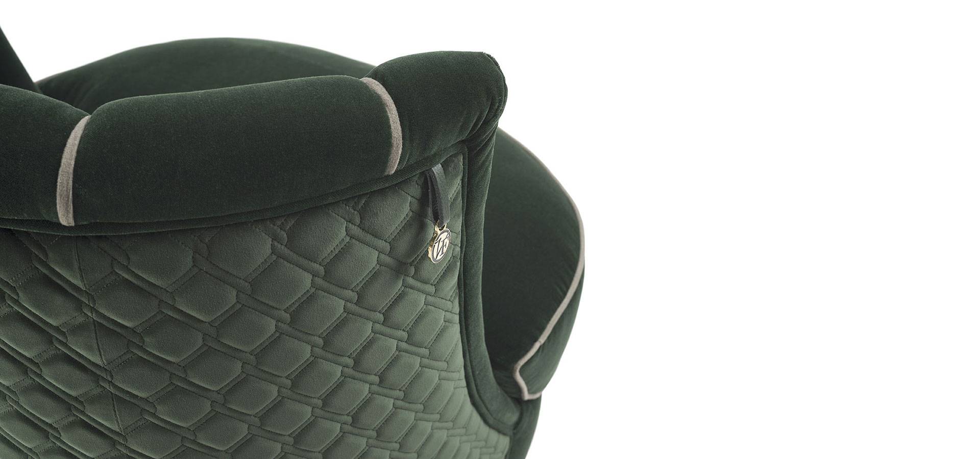 The Bianca armchair is comfortable and inviting. The seat is spacious and welcoming, and the backrest is accentuated by the tailoring craftsmanship, which includes a specific blanket on the outside and soft rounded bands with a profile on the inside. By contrasting the crisp and defined lines of the base, the final effect portrays softness. A comfy and unusual armchair with a balance of uncommon craftsmanship.
