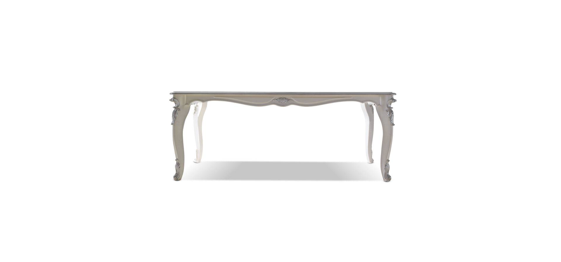 A traditional wooden table with elegantly carved legs, a curved top, and fabulous and distinctive embellishments to hand-finish in complementing colors or gold or silver leaf. Charlotte is an elegant dining table that would complement any dining space with flair and freshness. Also available in a variety of finishes and with an extension.