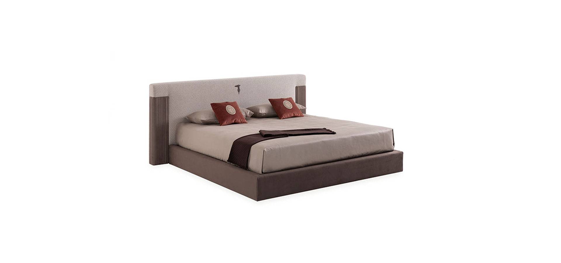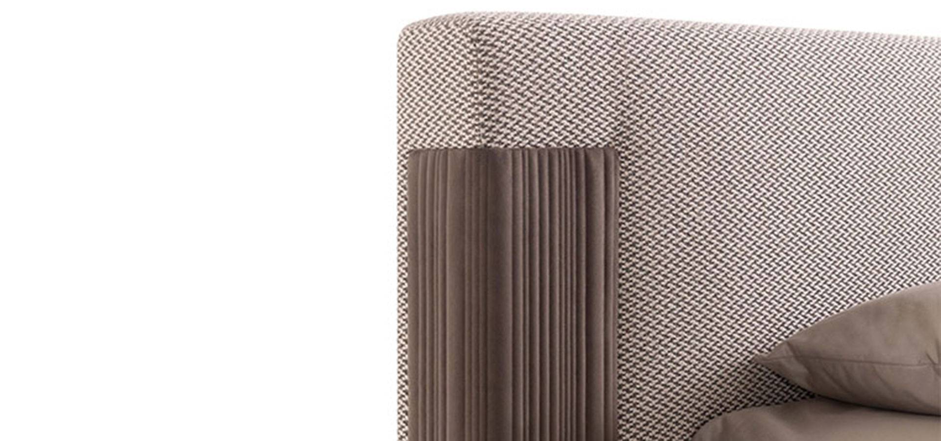 The leather headboard with Vertical quilting, a nod to the Trussardi fashion world, is the Deven bed's distinguishing characteristic. Lightweight, angular lines contrast with the bed's softness.