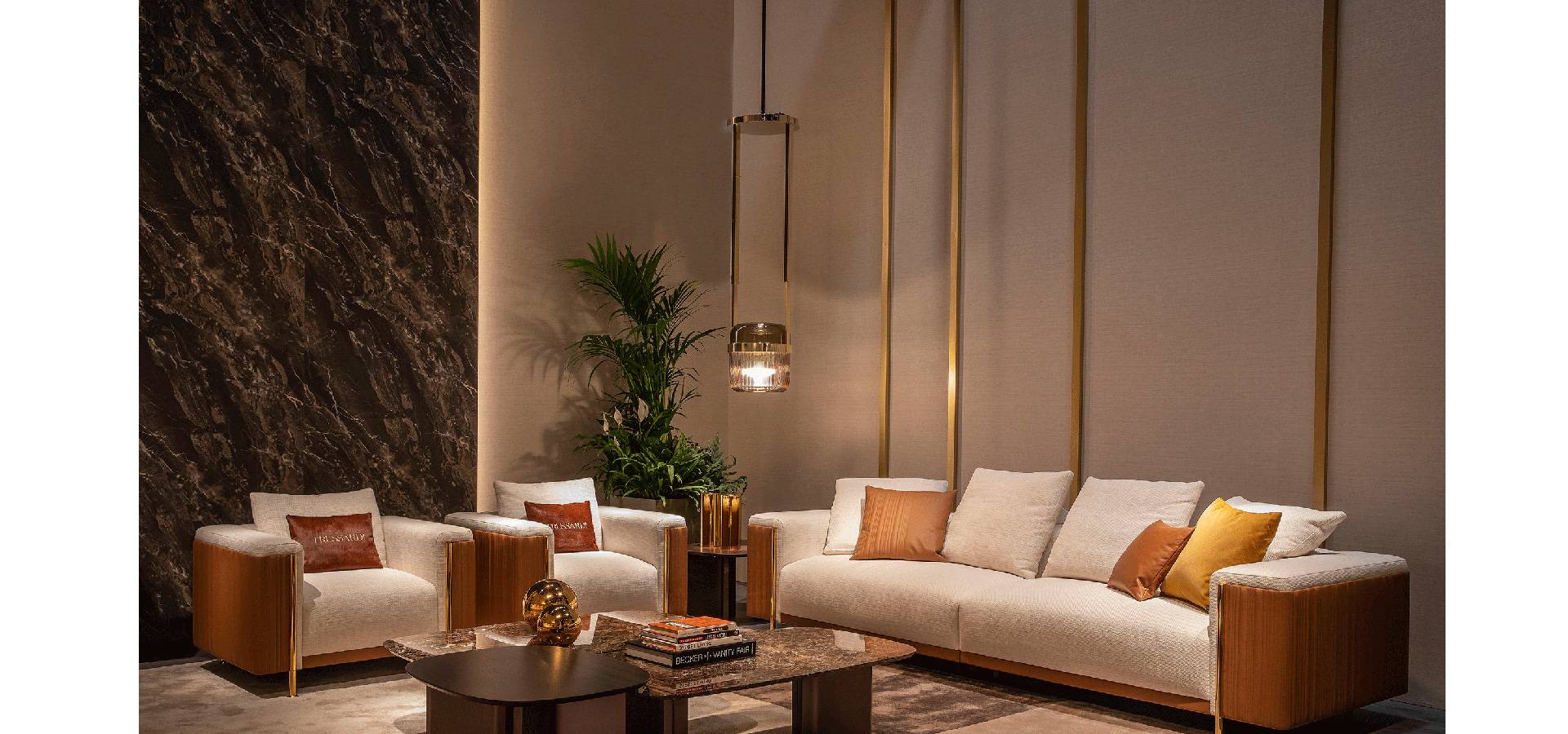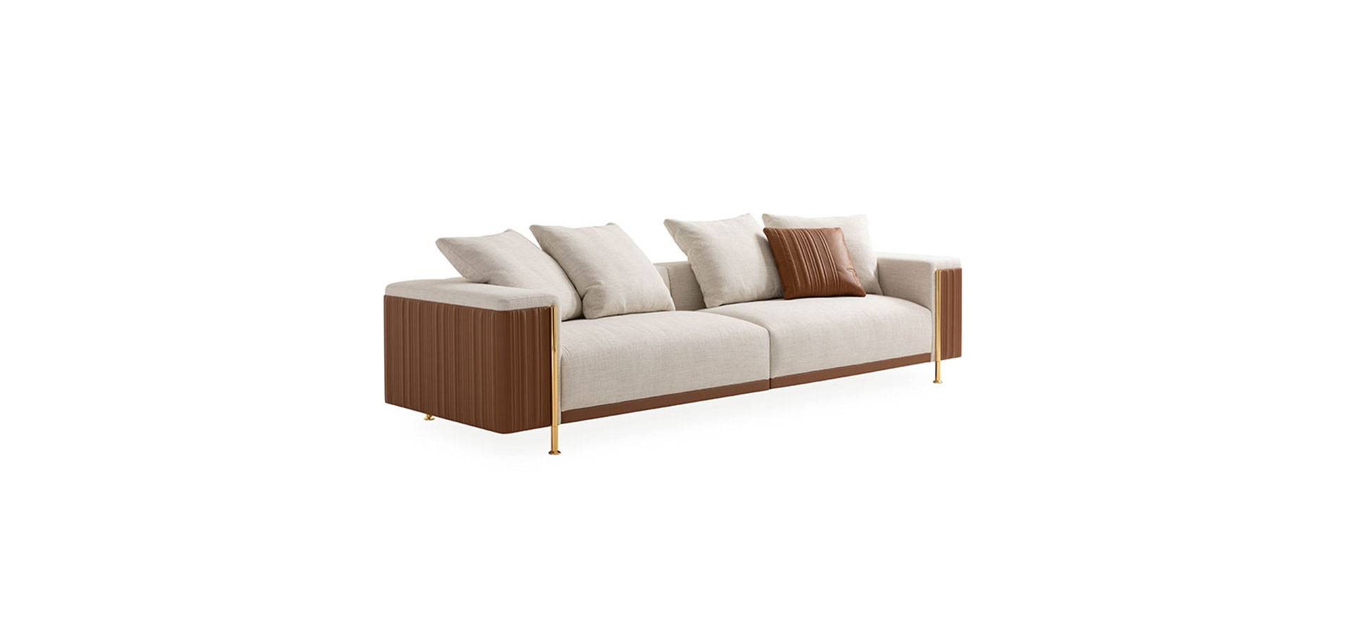 The leather Vertical quilting applied to the armrests of the Deven couch and armchair is reminiscent of the Trussardi fashion world. The shape is defined by light, square lines that are softened by the presence of steel feet in gunmetal grey, polished brass, or Dark Matt Bronze with an engraved Greyhound logo.