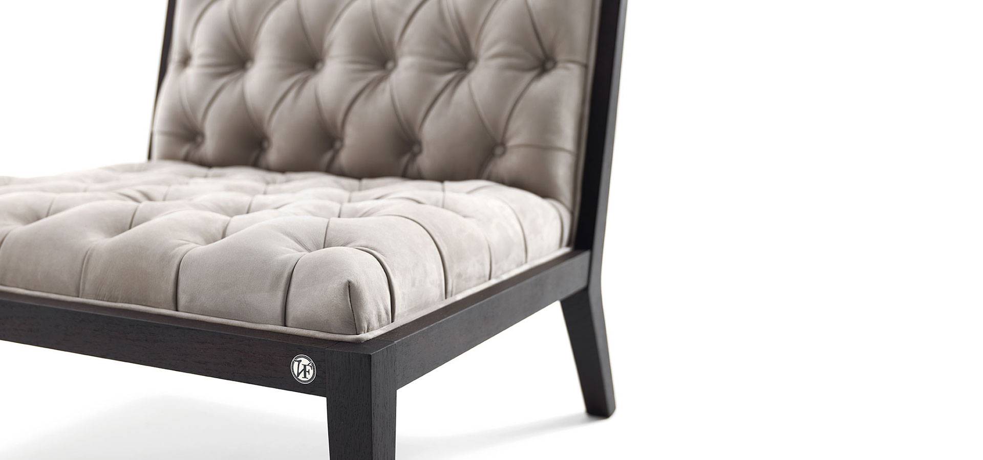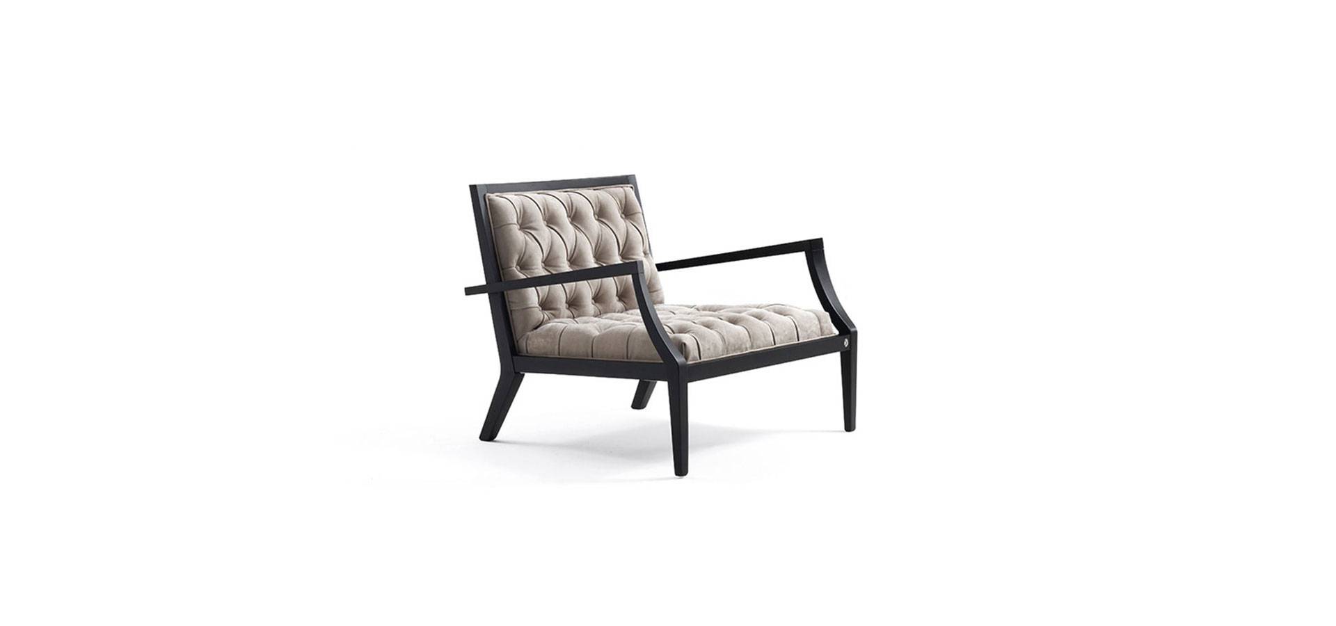 The Donà armchair elevates a classic form by incorporating a soft handcrafted capitonné padding into the square section solid wood construction. A quilted insert is added to the backrest, enhancing the collection's customizing capabilities. As a result, the Donà armchair becomes a versatile piece of furniture capable of adding contemporary classicism to any space.