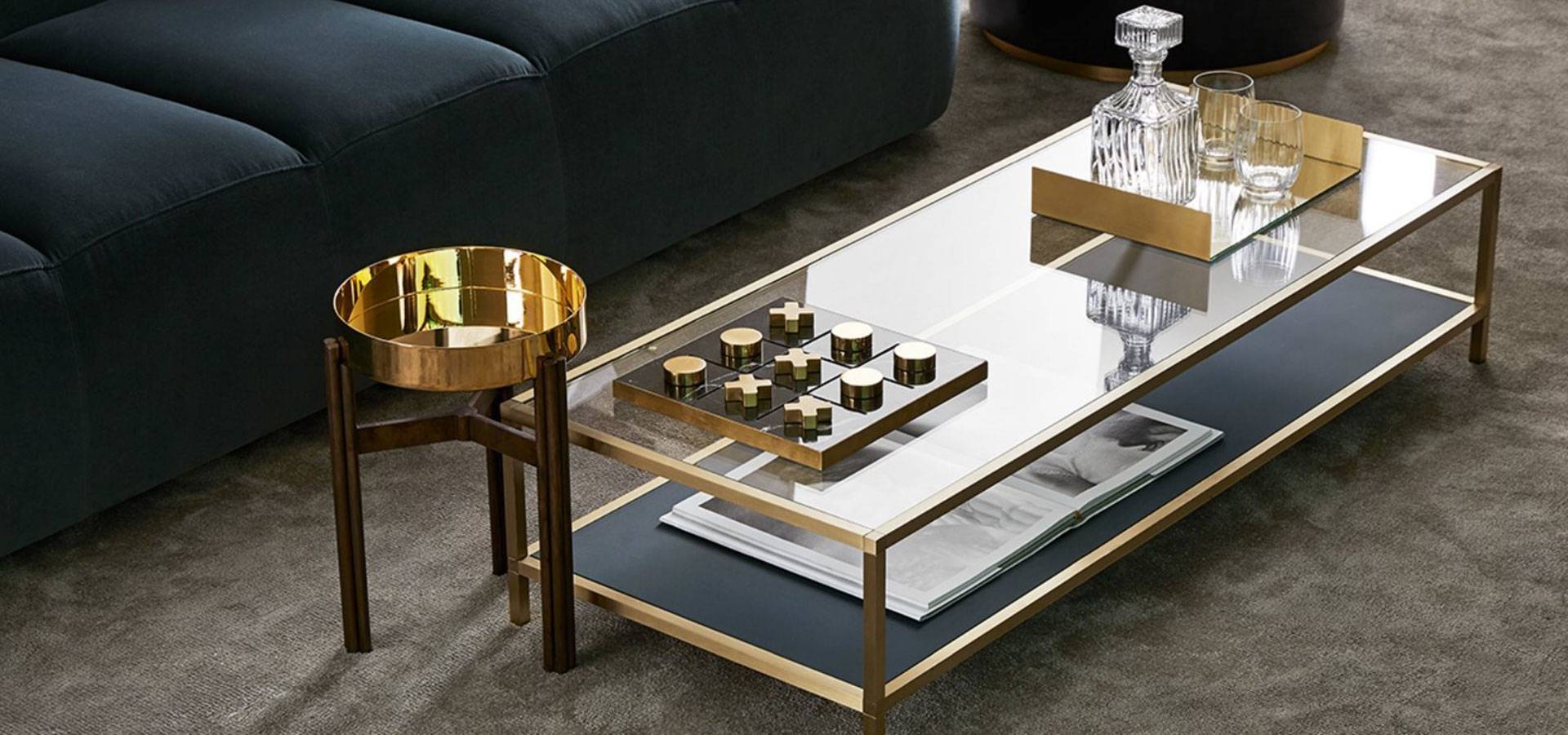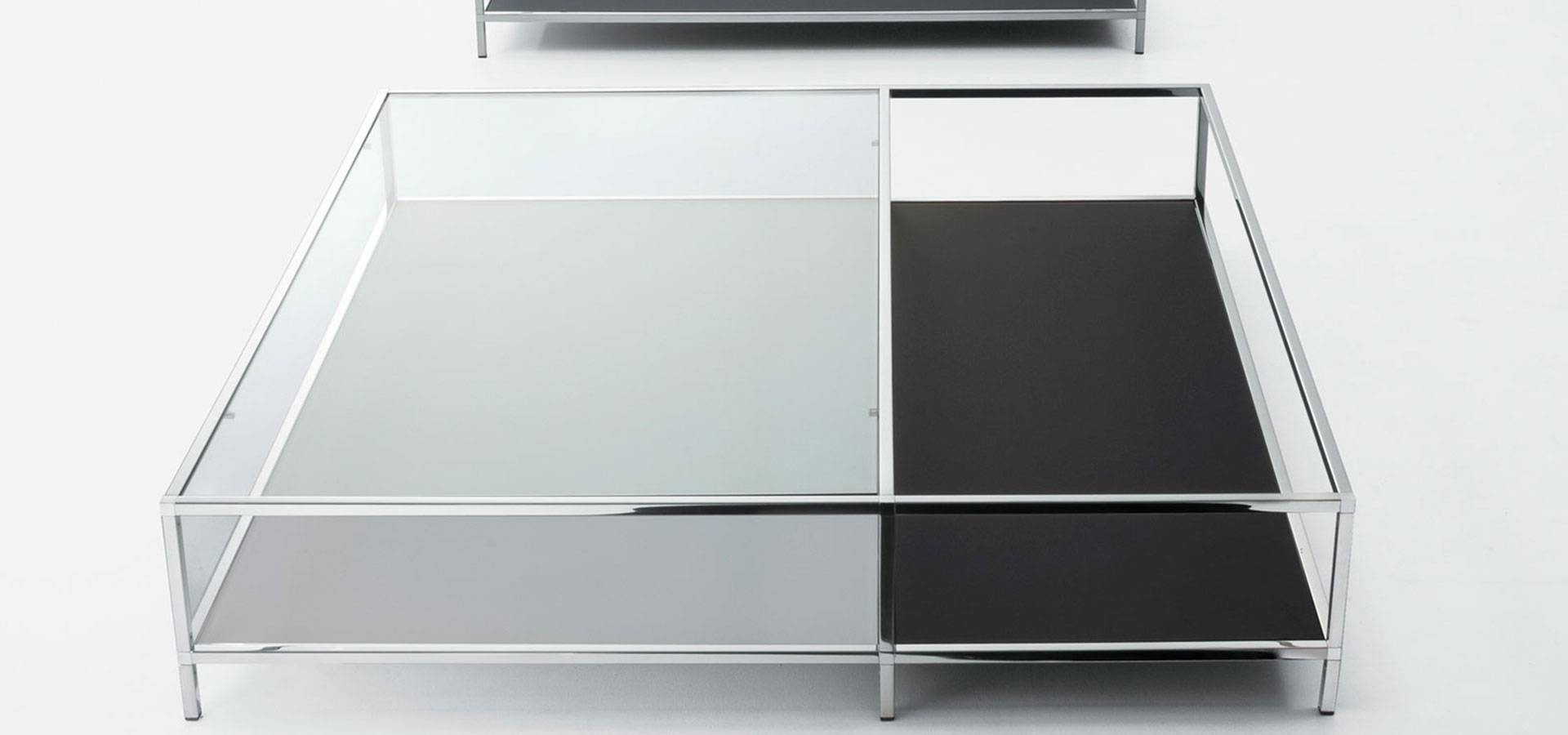 Structure is made of shiny stainless steel. Top made of 8mm tempered glass. 8mm clear or painted tempered glass bottom in brilliant or smooth finish, as shown in examples. Satin brass framework available upon request.