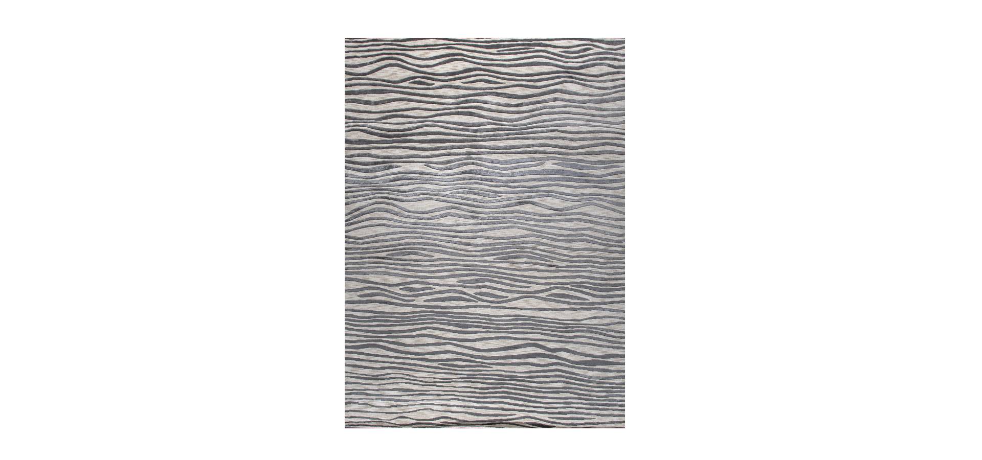 Beige modern handmade wool carpet with wavy lines in a shade of grey. An amazing rug to elevate the interior design of either your living room or bedroom