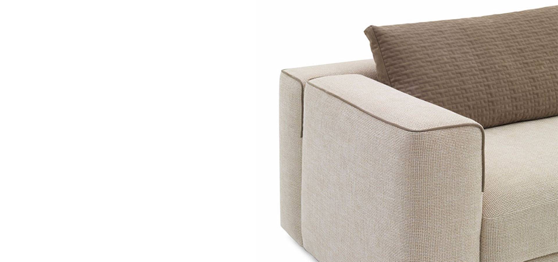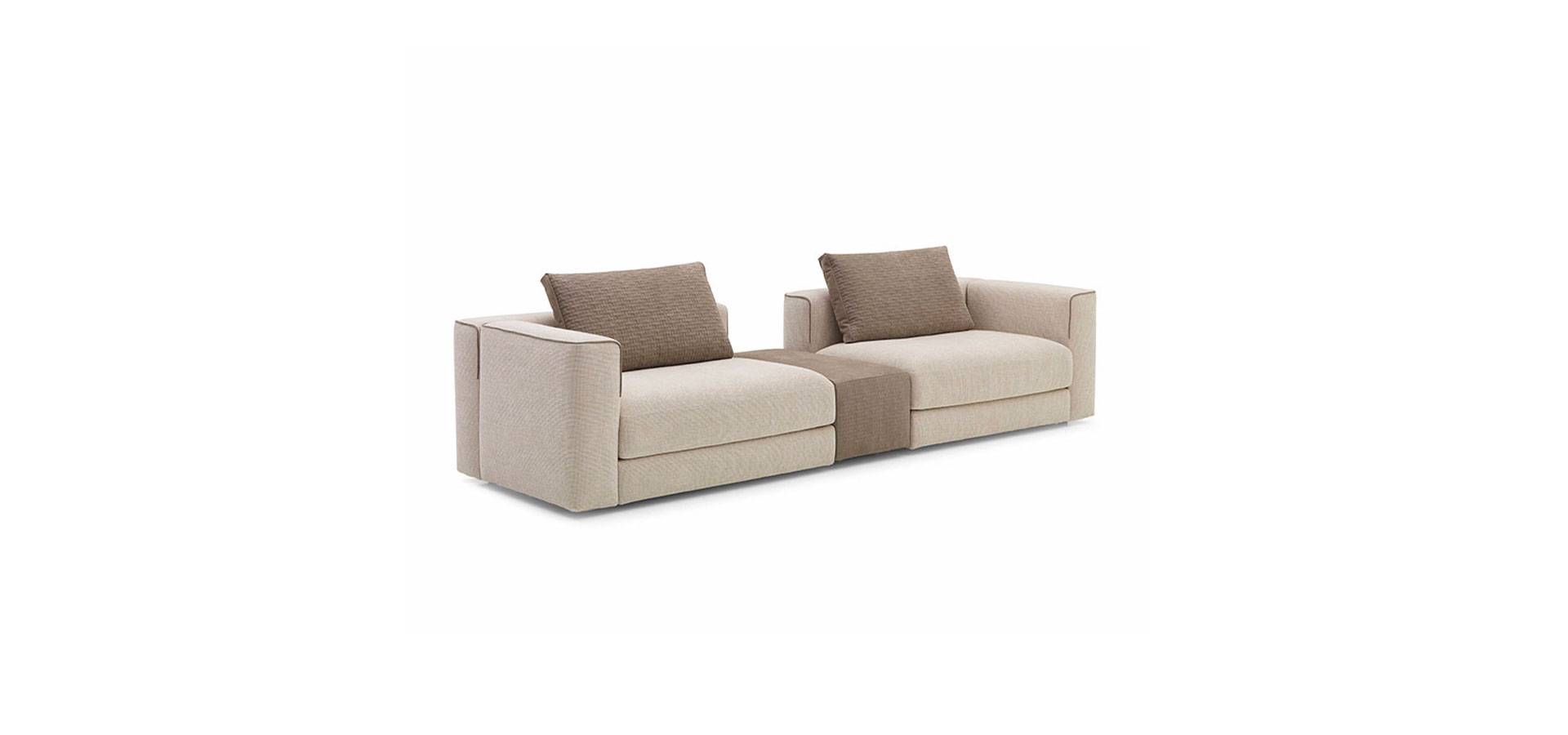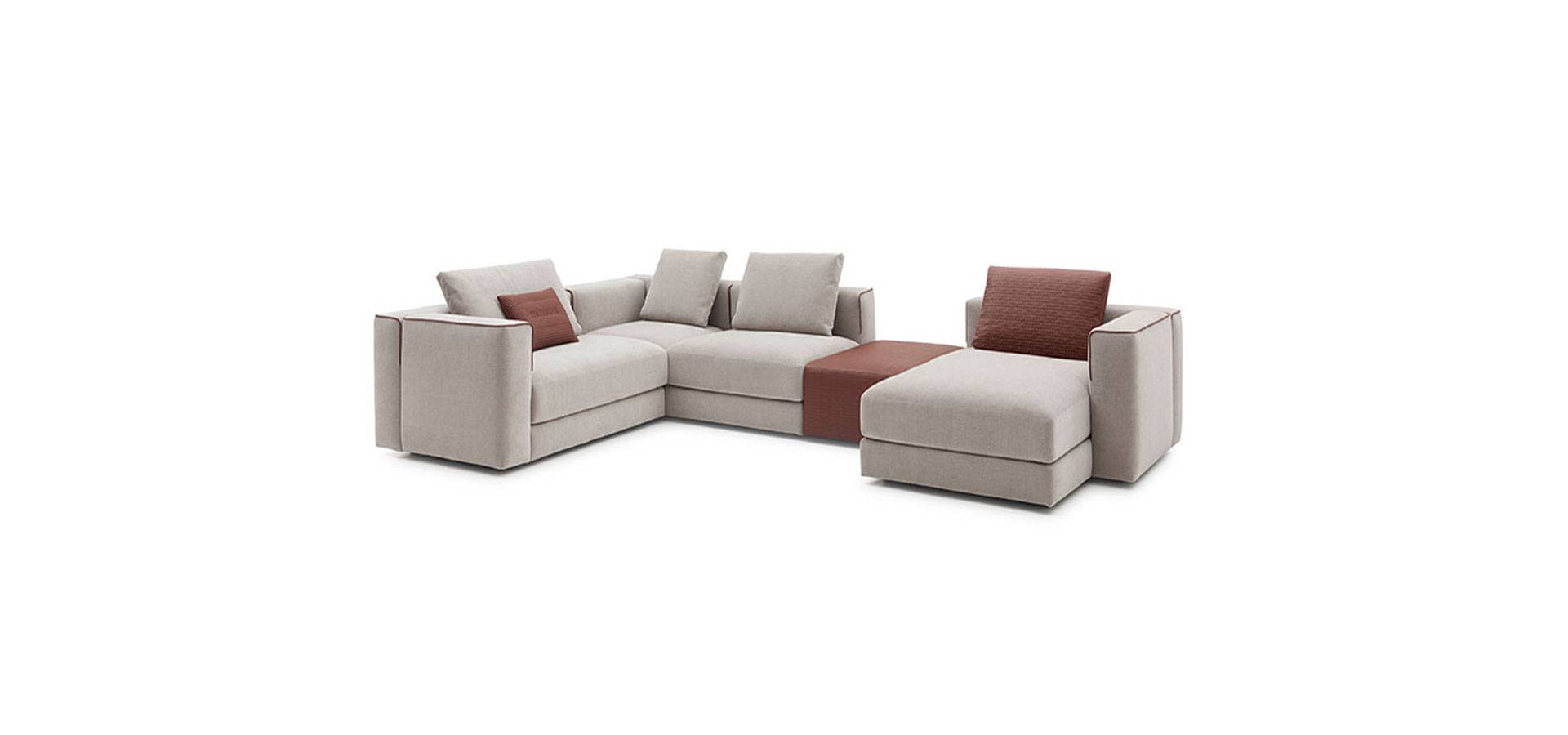 Happ is a modular couch system with a modern style. The softened corners of the back and armrests, as well as the leather piping that defines the shape, soften the rational lines.