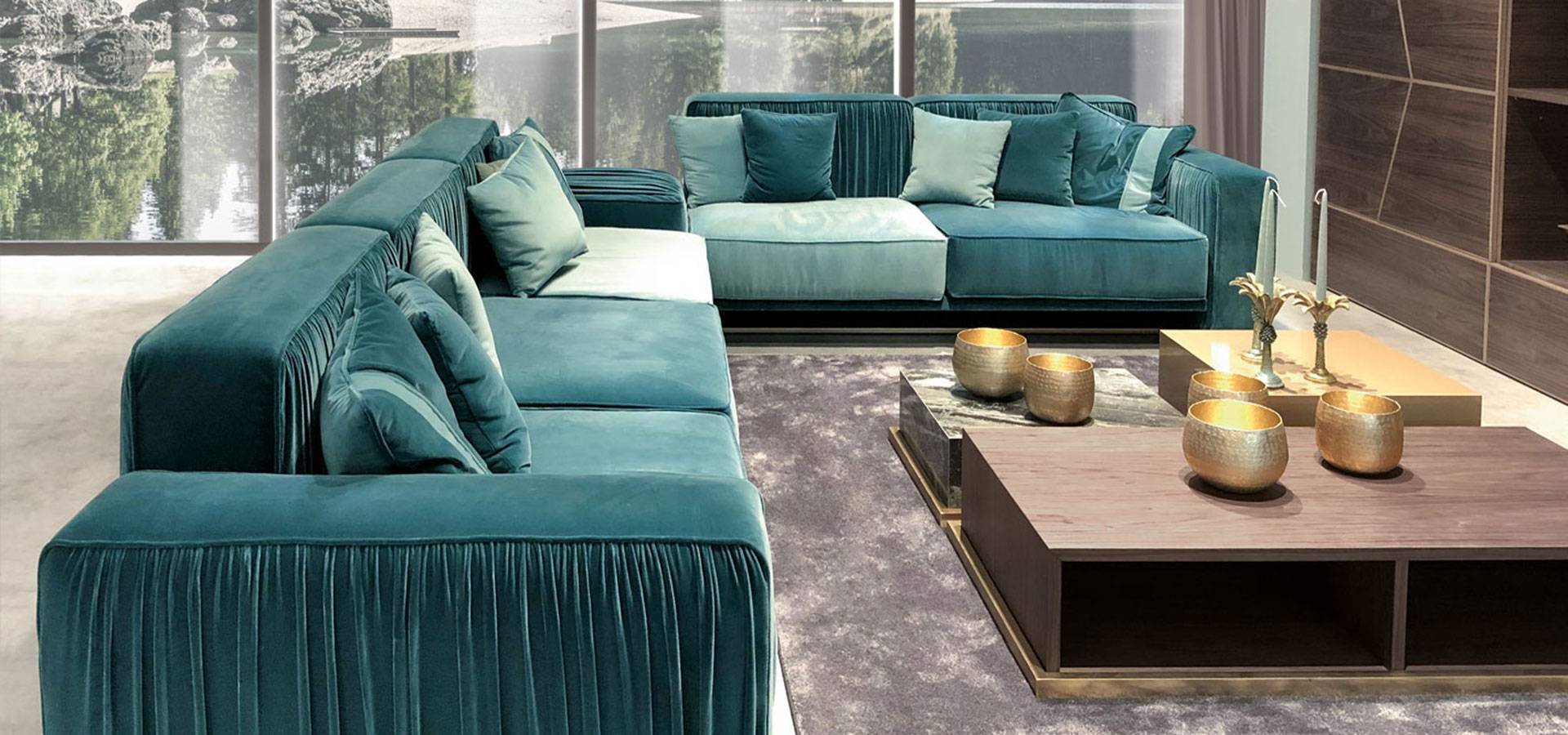 This sofa features pure dynamism, as well as style and comfort, thanks to the use of pleated fabric on the backrest and armrests, as well as the use of precious materials for the base, all of which are ideally suited to make a powerful effect. Its design is razor-sharp, with new surface and proportion treatments. Its design is razor-sharp, with new surface and proportion treatments. Herbin offers a straightforward modularity that strives to appeal to a diverse audience that appreciates the authentic Tailor Made.