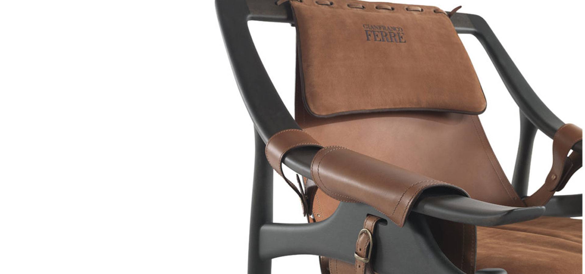 The Kalamaja armchair has a retro style and a metropolitan spirit. The solid gray tinted stained beech structure contrasts with the lightness of the suspended leather seat, which is supported by armrests with distinctive straps. A typical Mid-century style furnishing element that works well in urban decor settings.