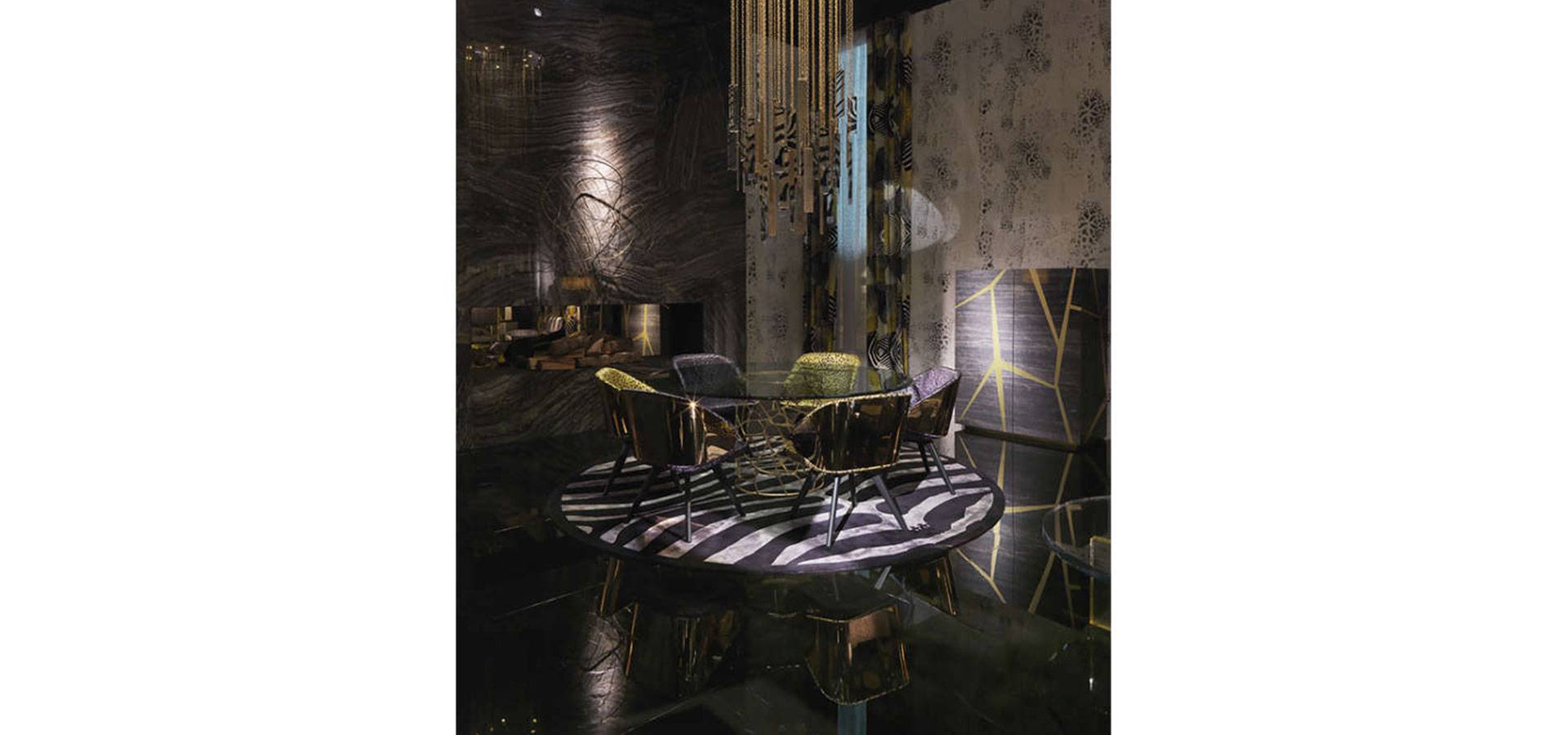 The Key West chair has an appealing design and classic lines. It has a sinuous and rounded design, a gold-finished enveloping back, and a comfy seat covered in the new Wild Jaguar print. Sensuality, warmth, and charm are the ideal components for a sensual and soothing atmosphere in your house.