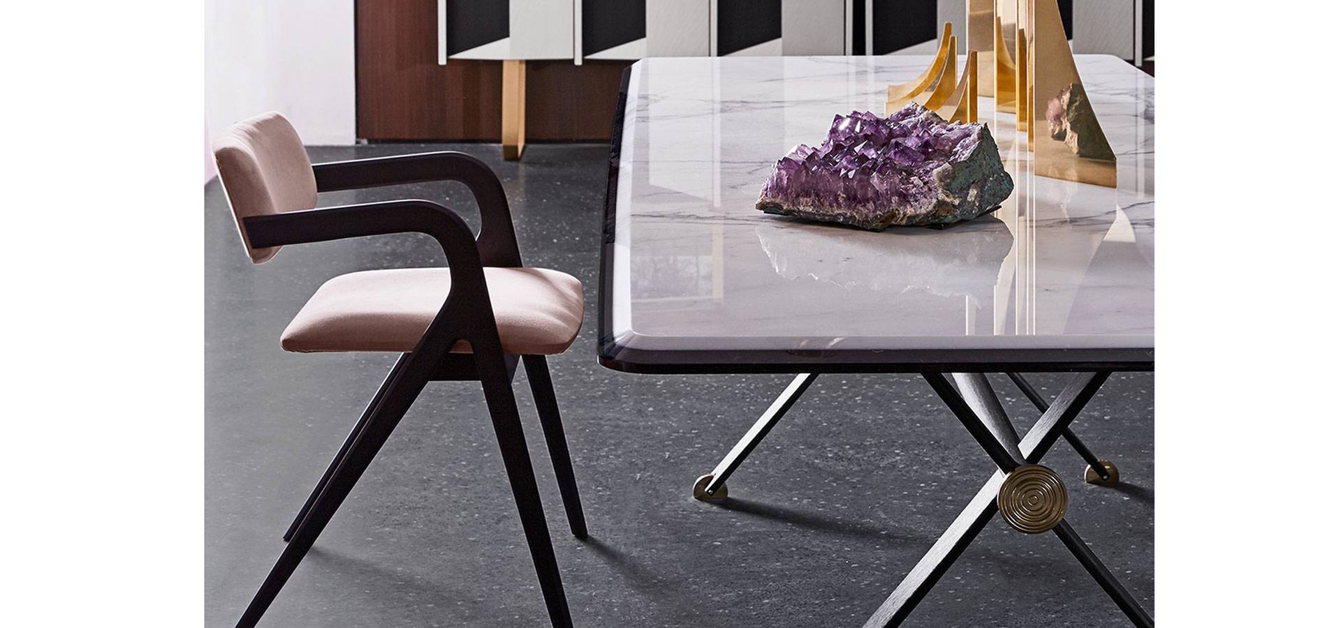 Chair with open pore solid curved ash structure in black lacquer. Natural ash, tobacco stained ash, and white open pore lacquered ash are also available. Seat having a wood inside construction and non-deformable polyurethane foam padding. Backrest constructed of flexible polyurethane foam dipped in structural polyurethane. Fabric or leather, depending on the samples. Cover is not detachable.