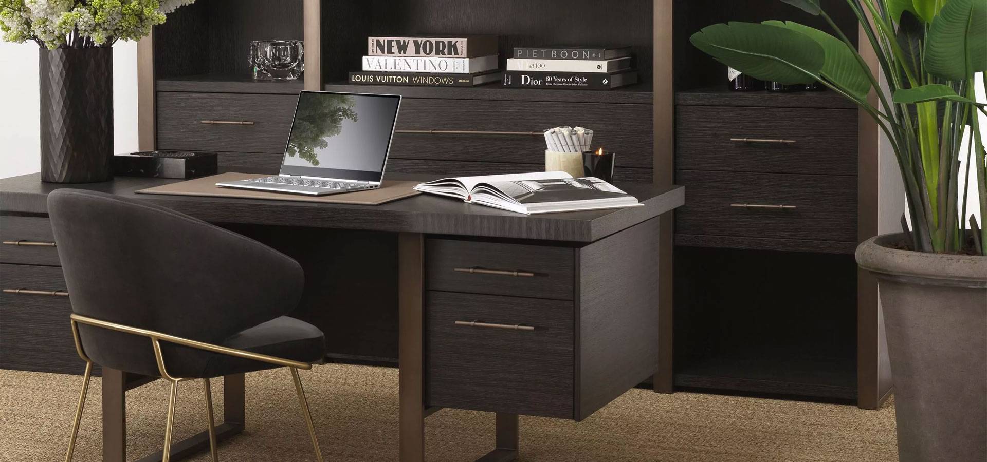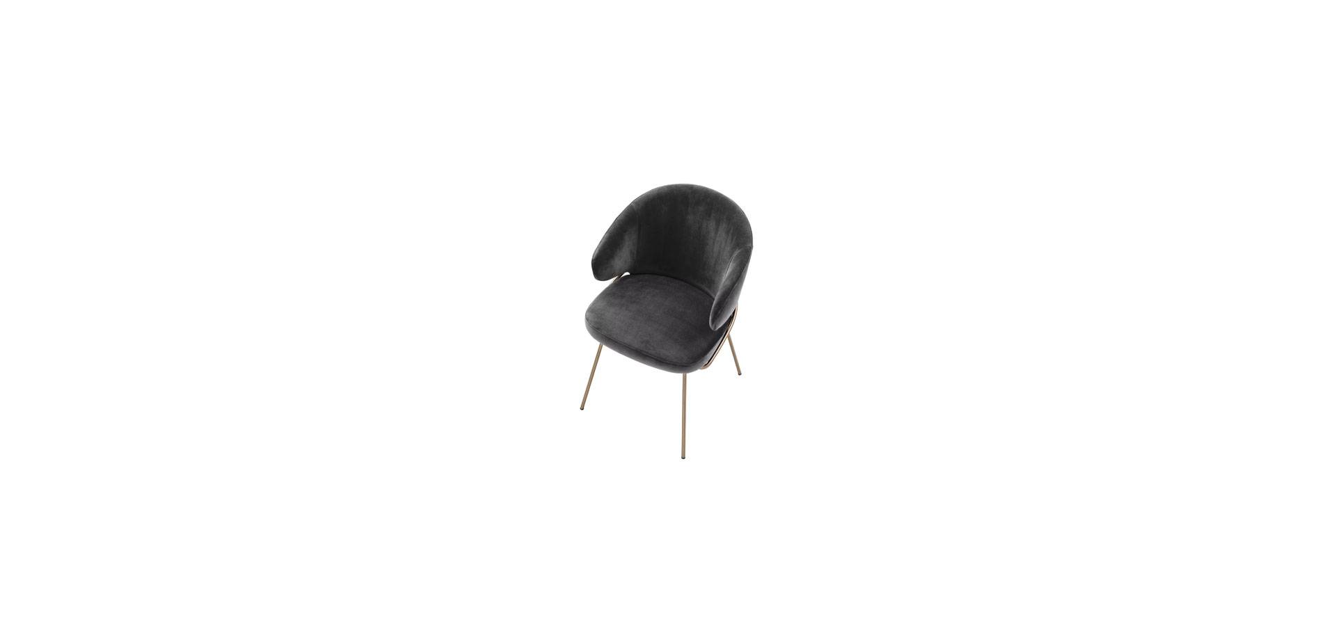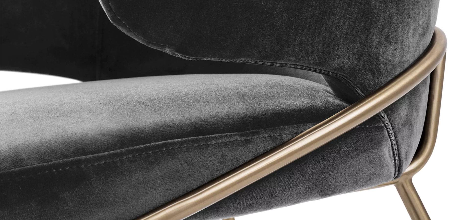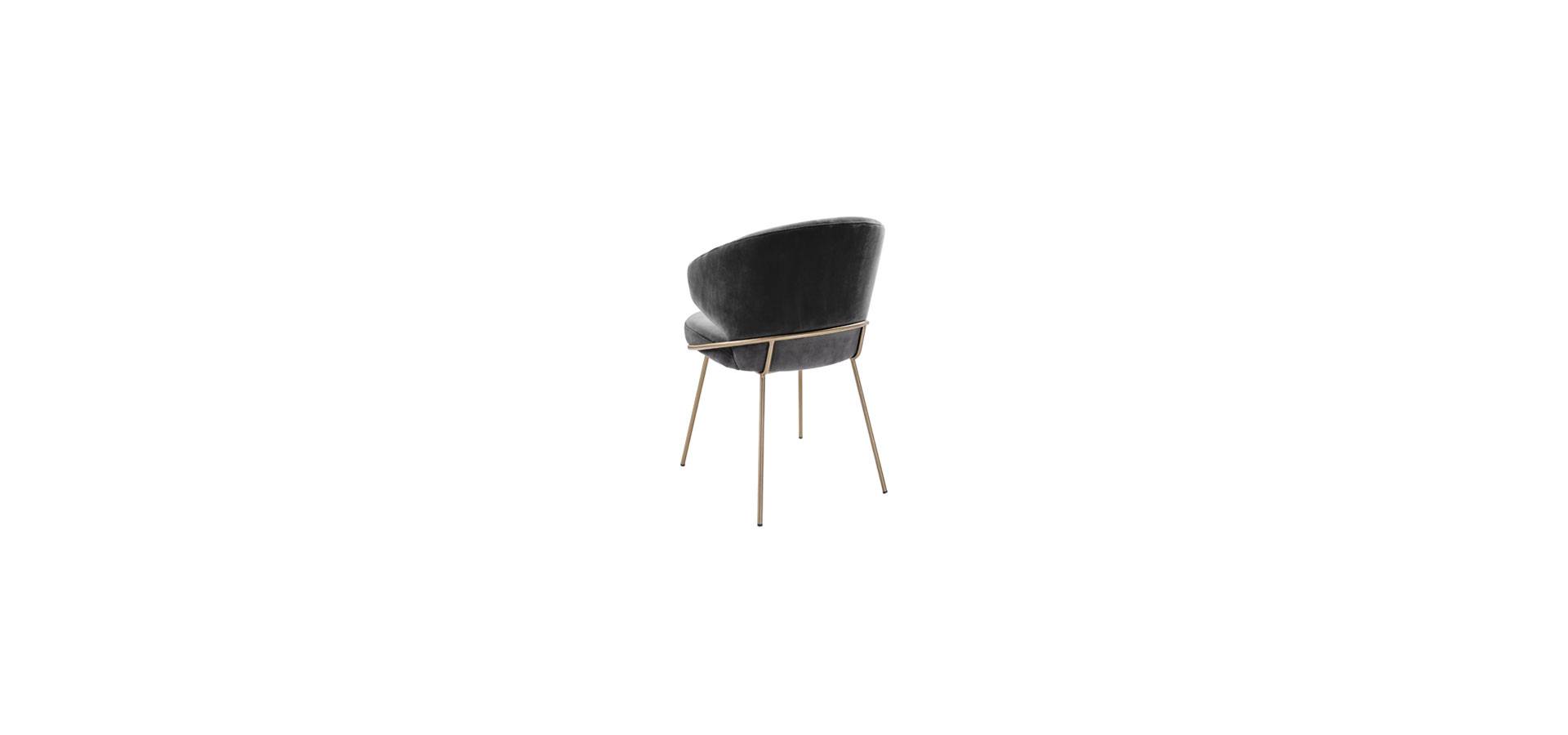With the Kinley Dining Chair, you can entertain your guests in style. This eye-catching armchair exudes Mid-Century Modern style, with a bent backrest and seat in Savona grey velvet upholstery and brushed brass legs.