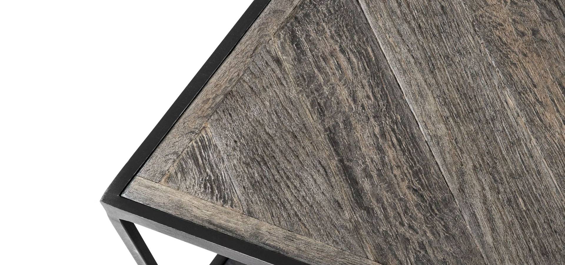 Allow your favourite books, glossy magazines, and decorative objects to shine on the La Varenne Coffee Table. This stylish square coffee table comprises a zinc finished steel frame with an weathered oak table top that nestles an equally proportioned low shelf surface below. Mix and match with design furniture and luxury lighting from the Eichholtz collection for an eclectic interior style.