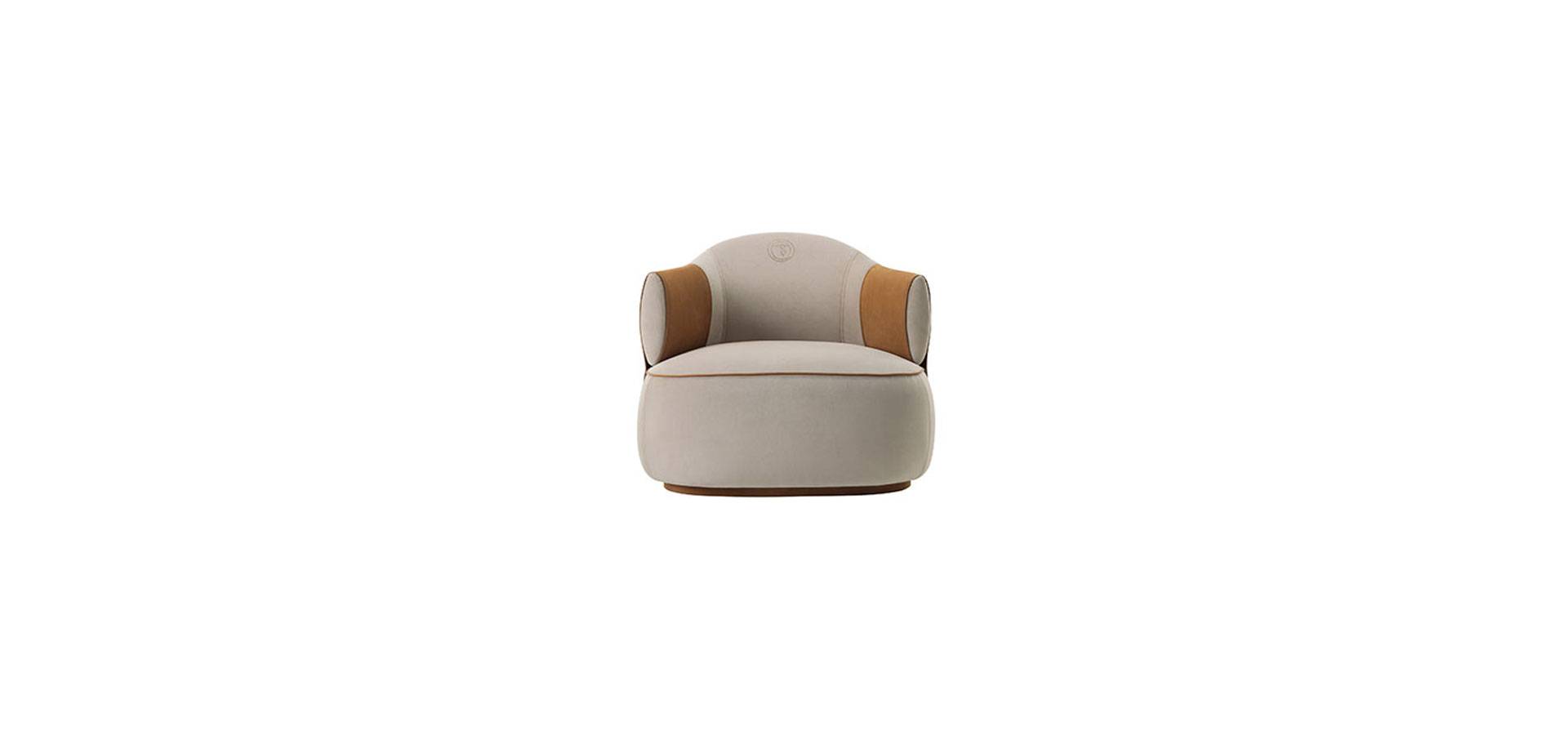 The Larzia armchair embodies softness and coziness. The geometry defines a solution with ample volumes, with the addition of an encompassing strip that accentuates the modern style.