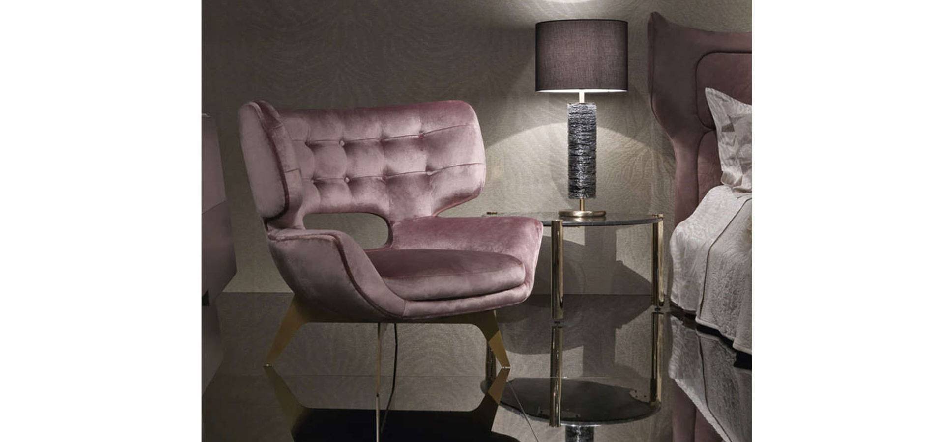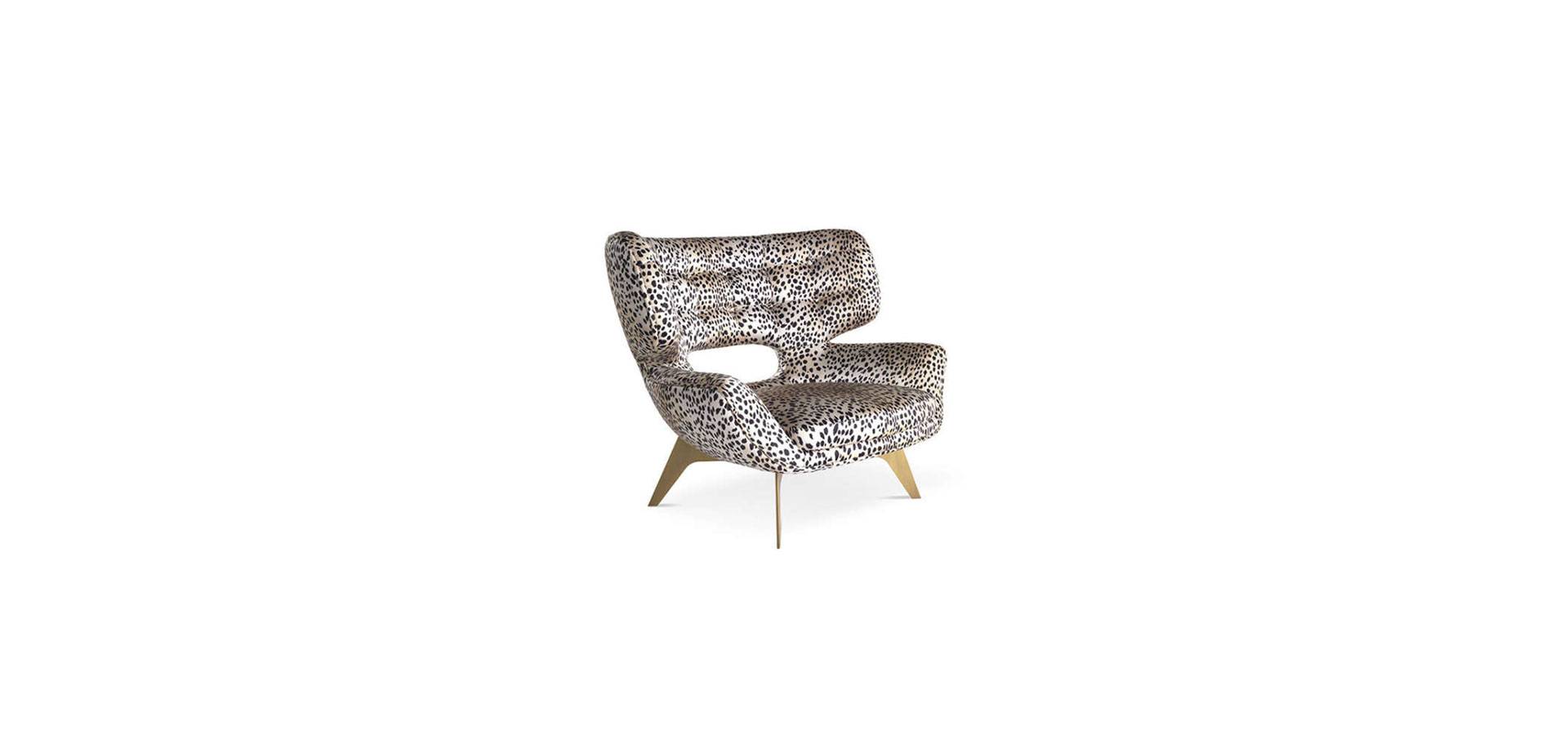 The exuberant and sophisticated armchair adds a chic and contemporary touch to the living area with its distinct 50s style. Maclaine is available in a variety of finishes, including this new silk with lynx print.
