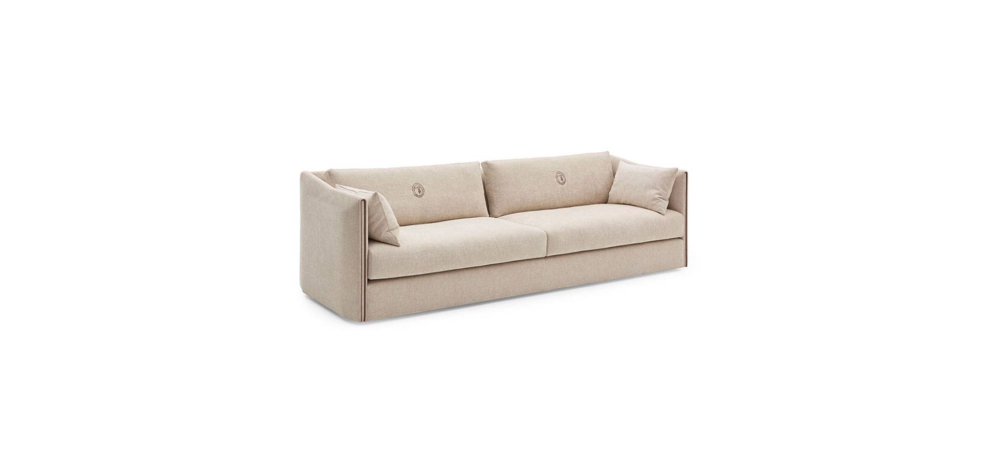 The Maryl couch and armchair reinterpret the Maison's aesthetic guidelines. The piping incorporated into the armrest emphasizes its uniqueness and thin shape, complementing the fragmented, asymmetrical lines of a project that provides a high level of comfort.