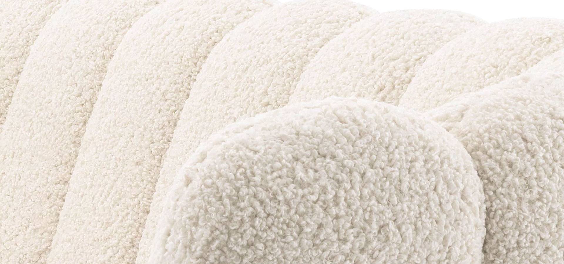 Add fifties-inspired glamour to your living room with the sumptuous Mirage Sofa. With a lush velvet upholstery in faux shearling, this alluring shell-shaped sofa with brushed brass finish base will round out your interior design.
