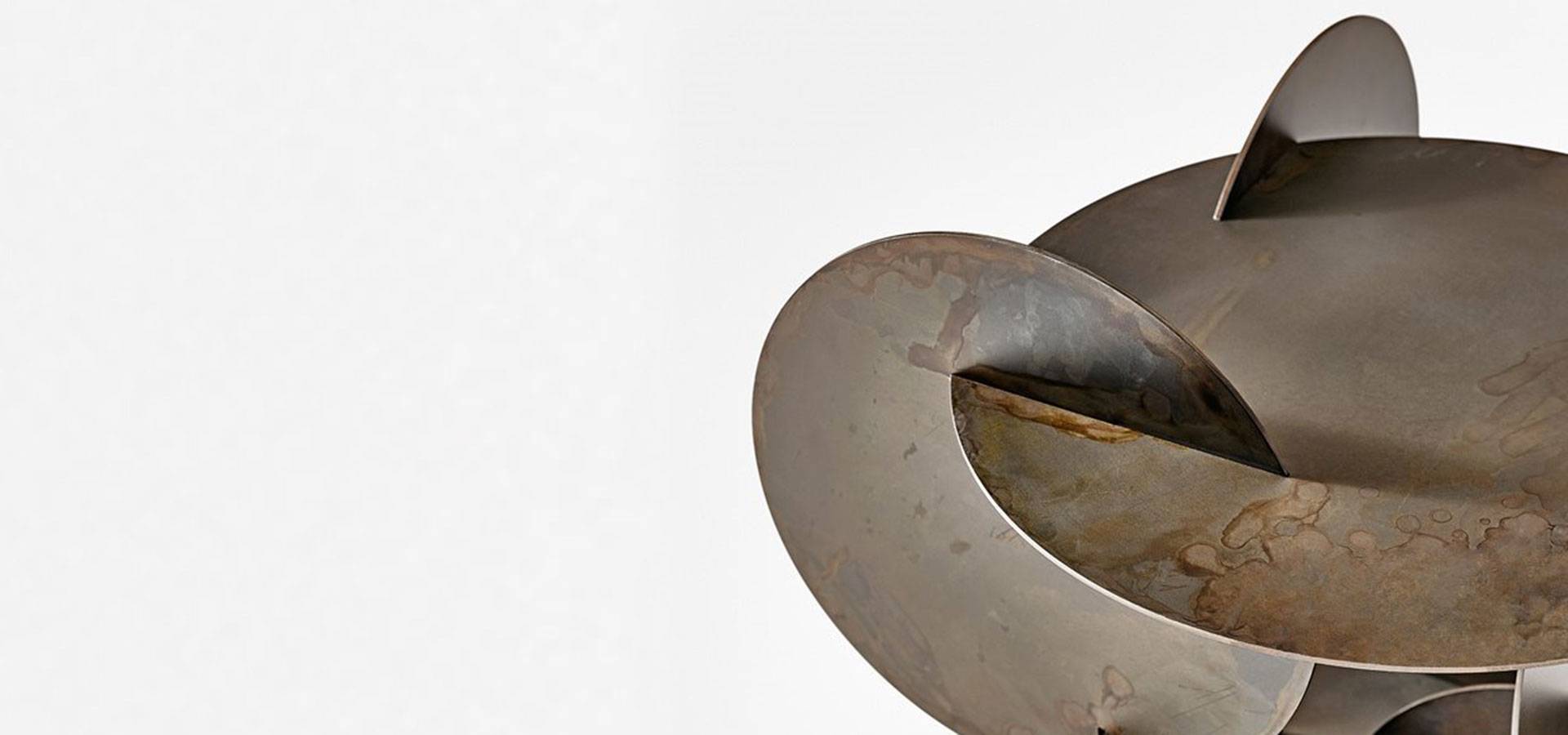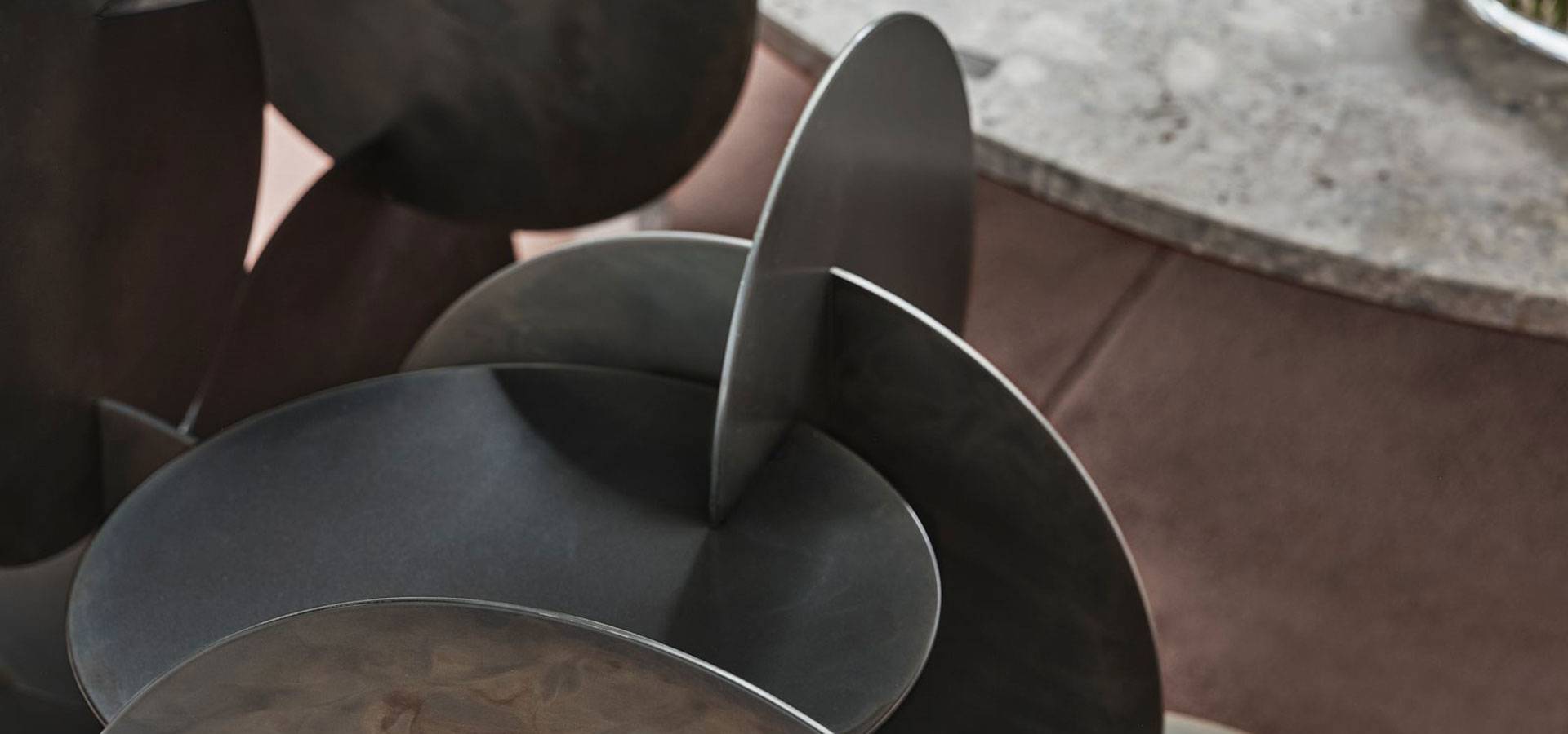 Hand-burnished metal coffee table. The metal has a natural spotty and uneven appearance. Each product is distinct and exclusive due to the handcrafted processing. If you need to match a coffee table you already own, please let us know before placing your order.