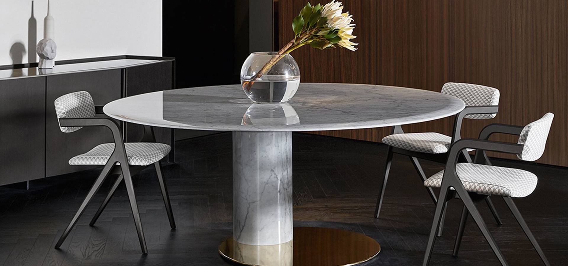 Natural polished Bianco Carrara marble top and base, or honed mat Nero Marquinia marble top and base. Protected stainless steel bottom plate with brass plating. On request, a marble spinning plate rests on the top.