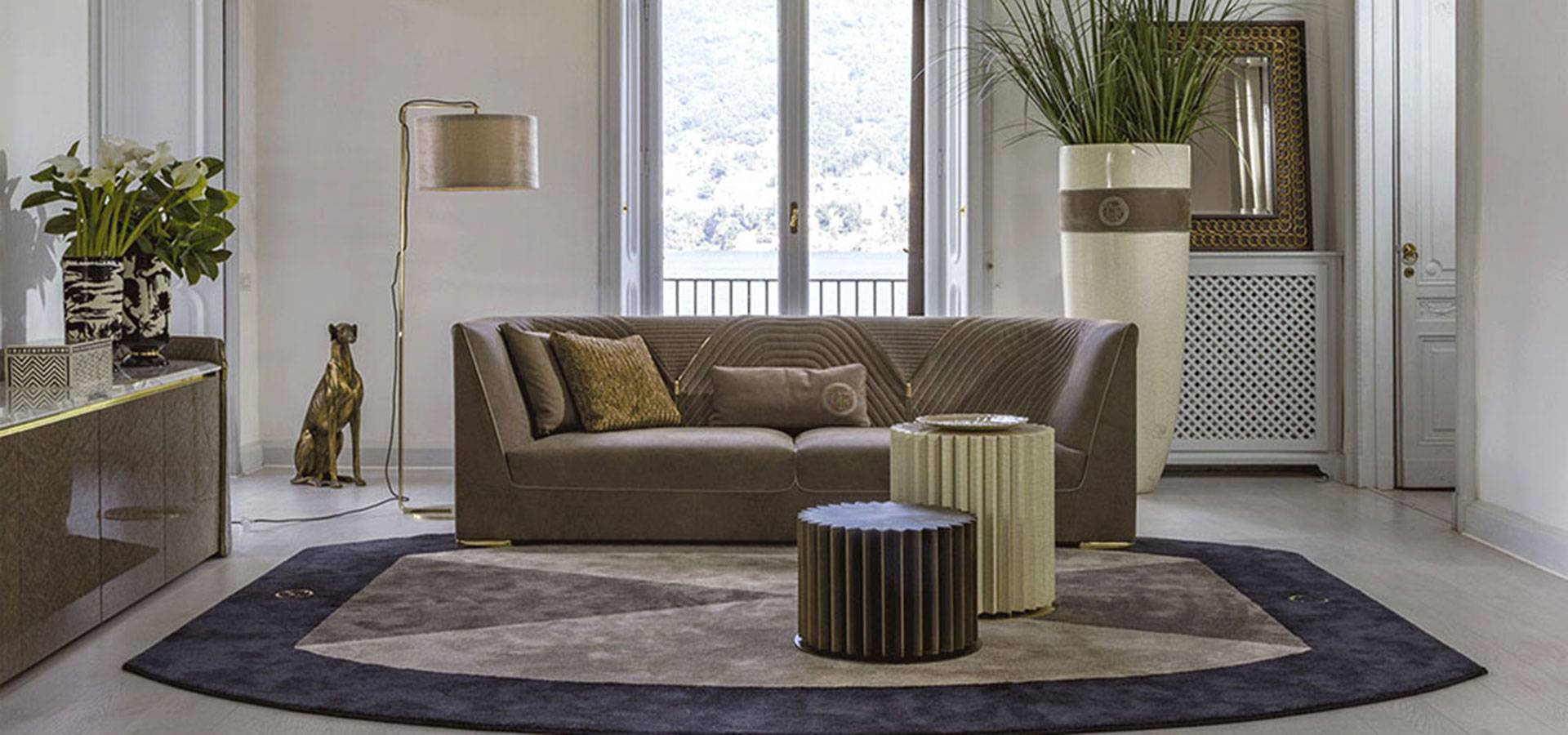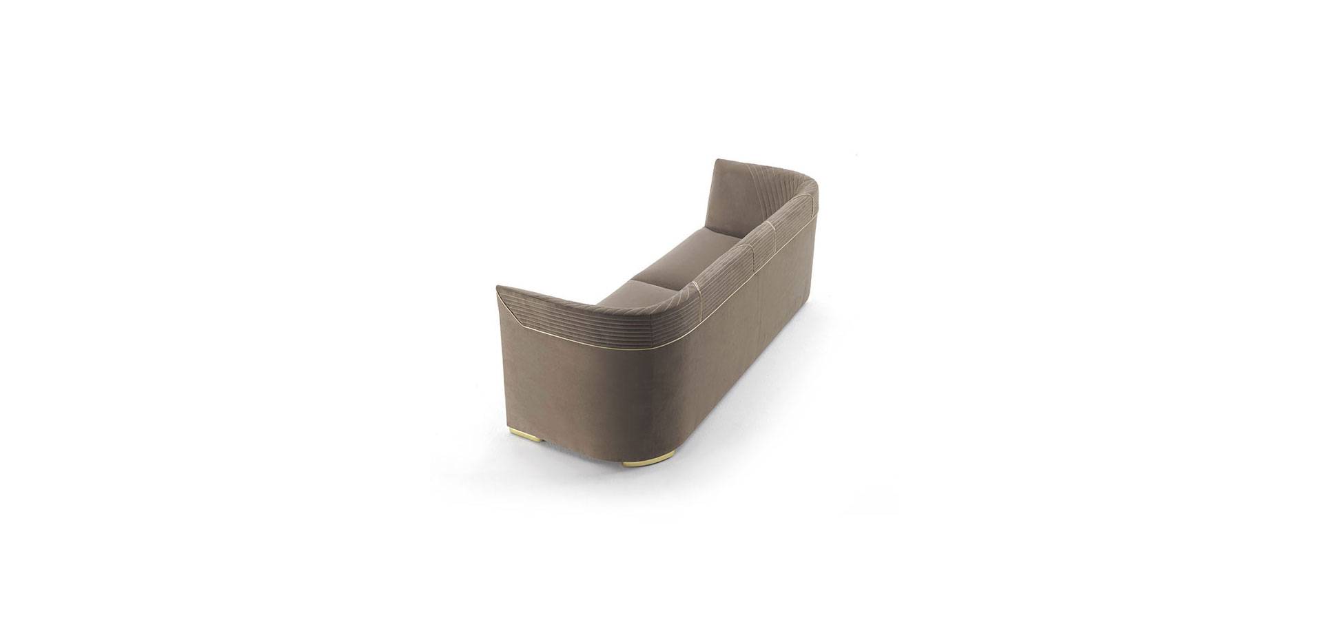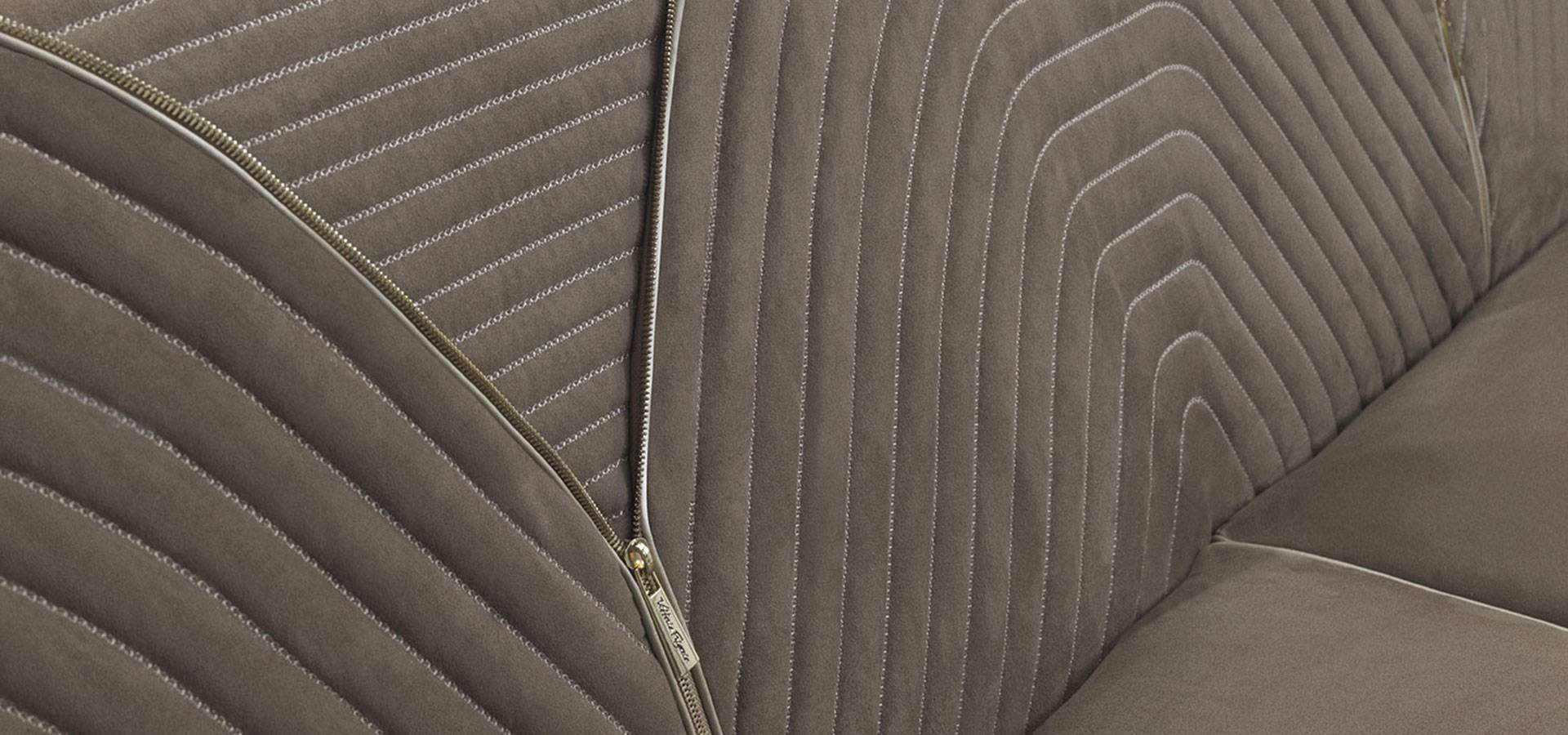 The Ranieri sofa's visual language is based on classic and strict lines, and it conveys dynamism and completeness thanks to the delicate diagonal of the armrest that blends into the backrest in a continuous line. The backrest's inner and upper portions are adorned with devoted needlework, which is complemented by a hinge in gold or black chrome with a sleek profile. In a version of elegant refinement, Ranieri provides an excellent plan.