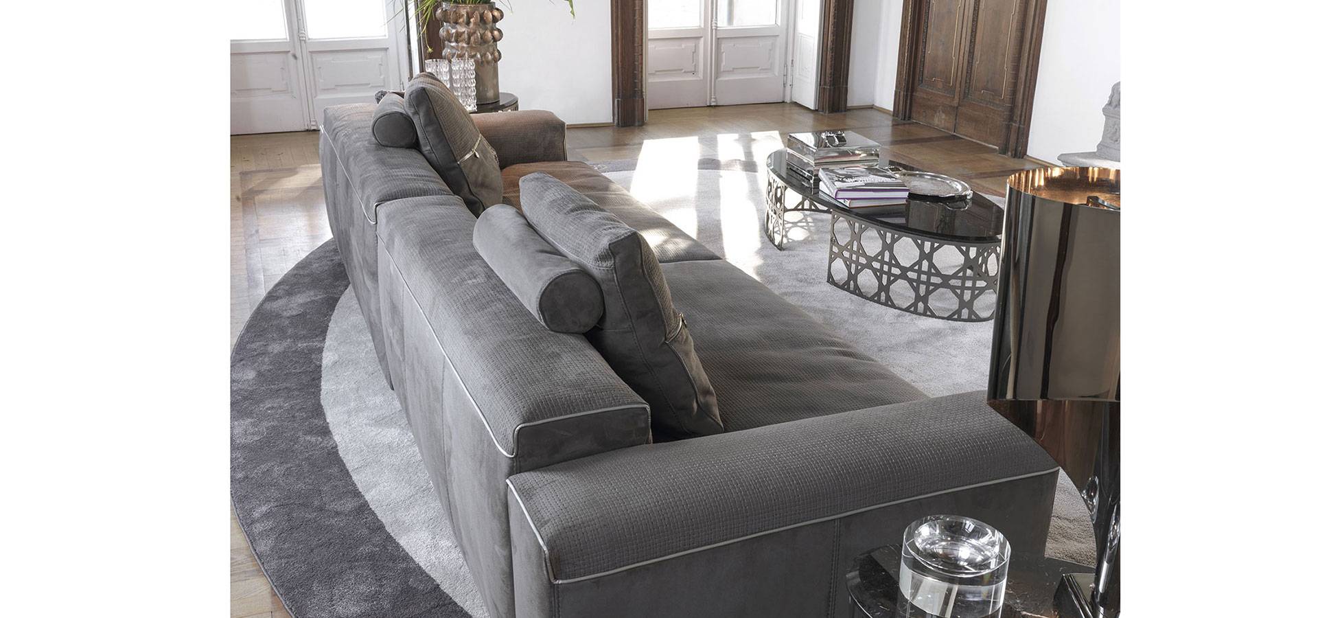 The Sforza collection has a vintage luxury soul thanks to the precious quilted inserts on the seat and back that outline the proportions, transforming the monobloc into a play of textures and details, and an urban modular logic thanks to the choice between four sizes of armrests, which allow furnishing solutions with an articulated rhythm. The collection's ornamental cushions, like the sofa, replicate the textural effect with quilted inserts. The Sforza sofa transforms current designs into a timeless classic.