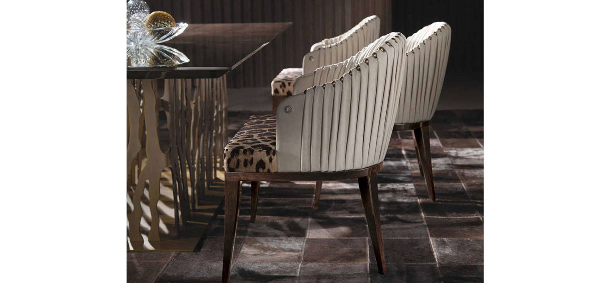 Metal and polyurethane foam structure Upholster in the collection's fabric or leather. Legs are finished in a glossy wengé color. Decorative spheres in all of the collection's finishes.