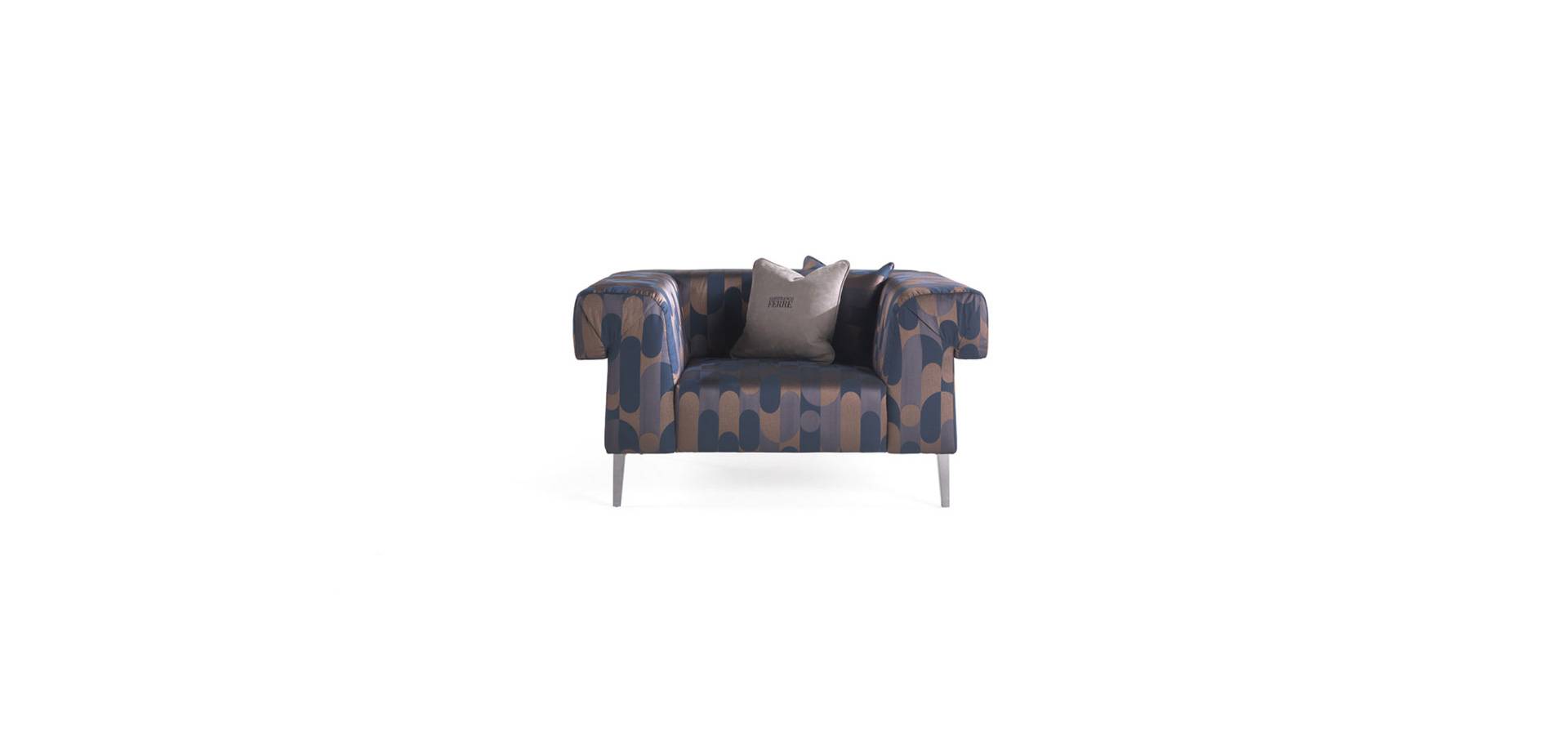 Thanks to the mix of the smooth leather upholstery and the black chrome finish of the feet, elegance and sobriety come together to meet the urban character of the Gianfranco Ferré Home 2019 collection.