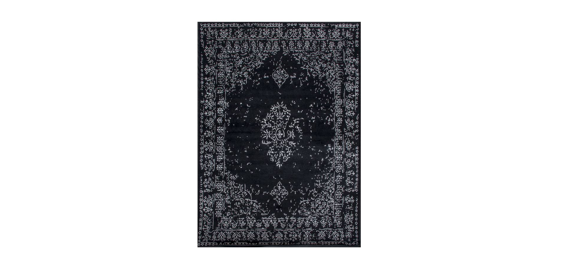 A contemporary take on a classic carpet with a thick wool pile in black and a faded design. The ideal rug to match your furniture in any living space.