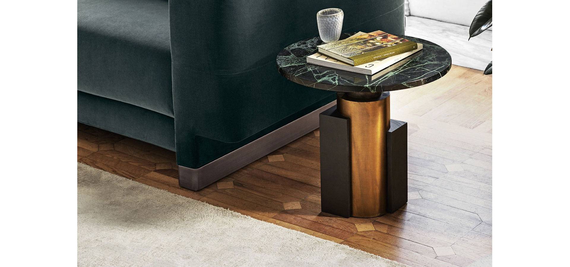 Verde Alpi, Calacatta Vagli Oro, or Nero Marquinia marble top coffee table. The construction is hand-burnished brass with black open-pore lacquered timber pieces.