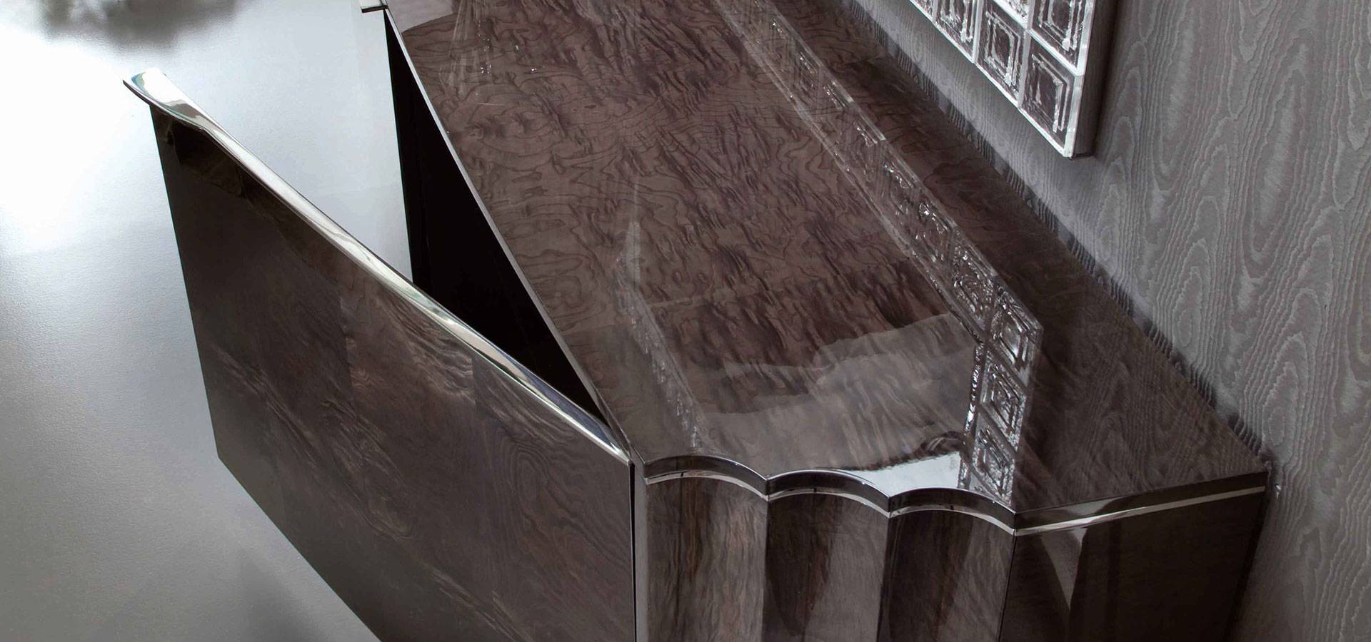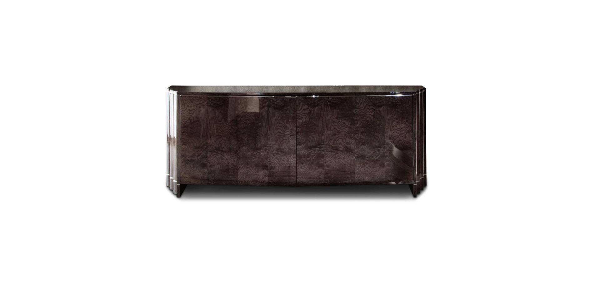 2 door buffet with a high gloss polyester finish and a blend of moka japanese tamo burl veneer.