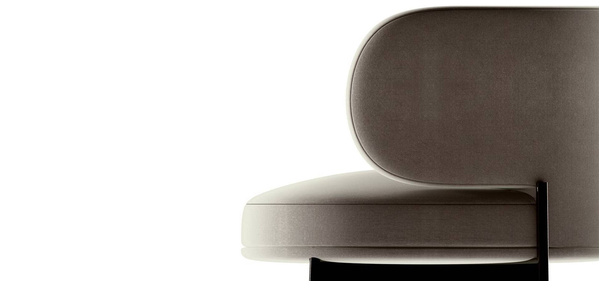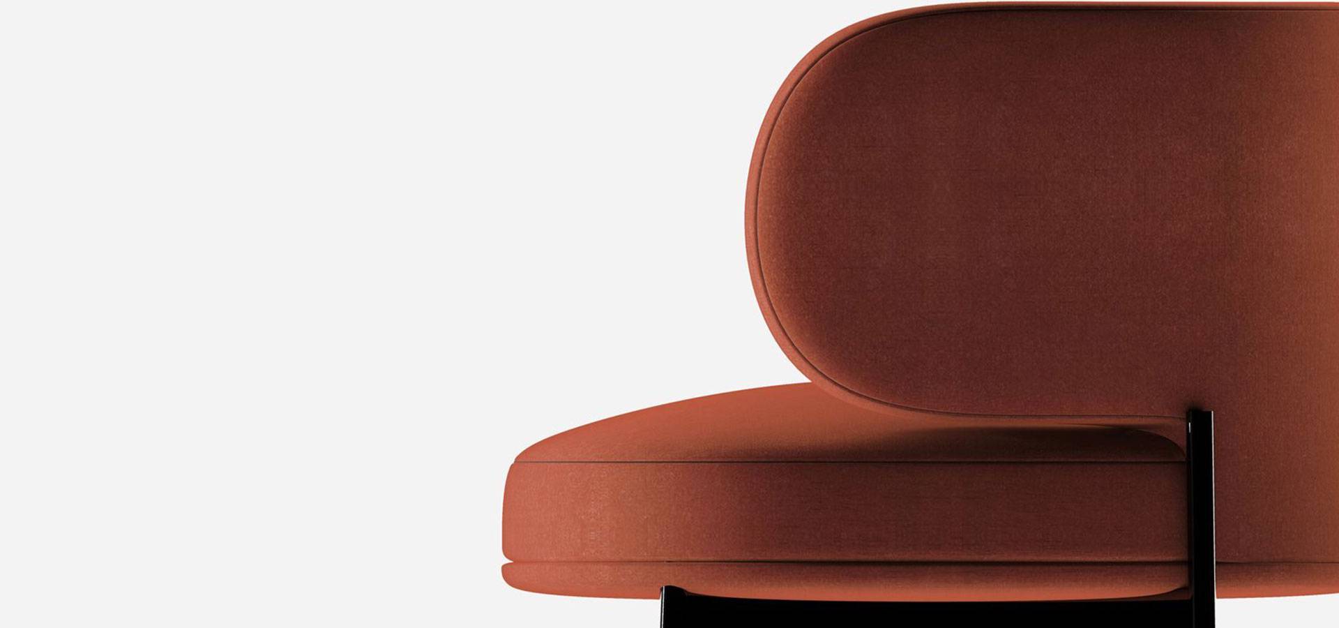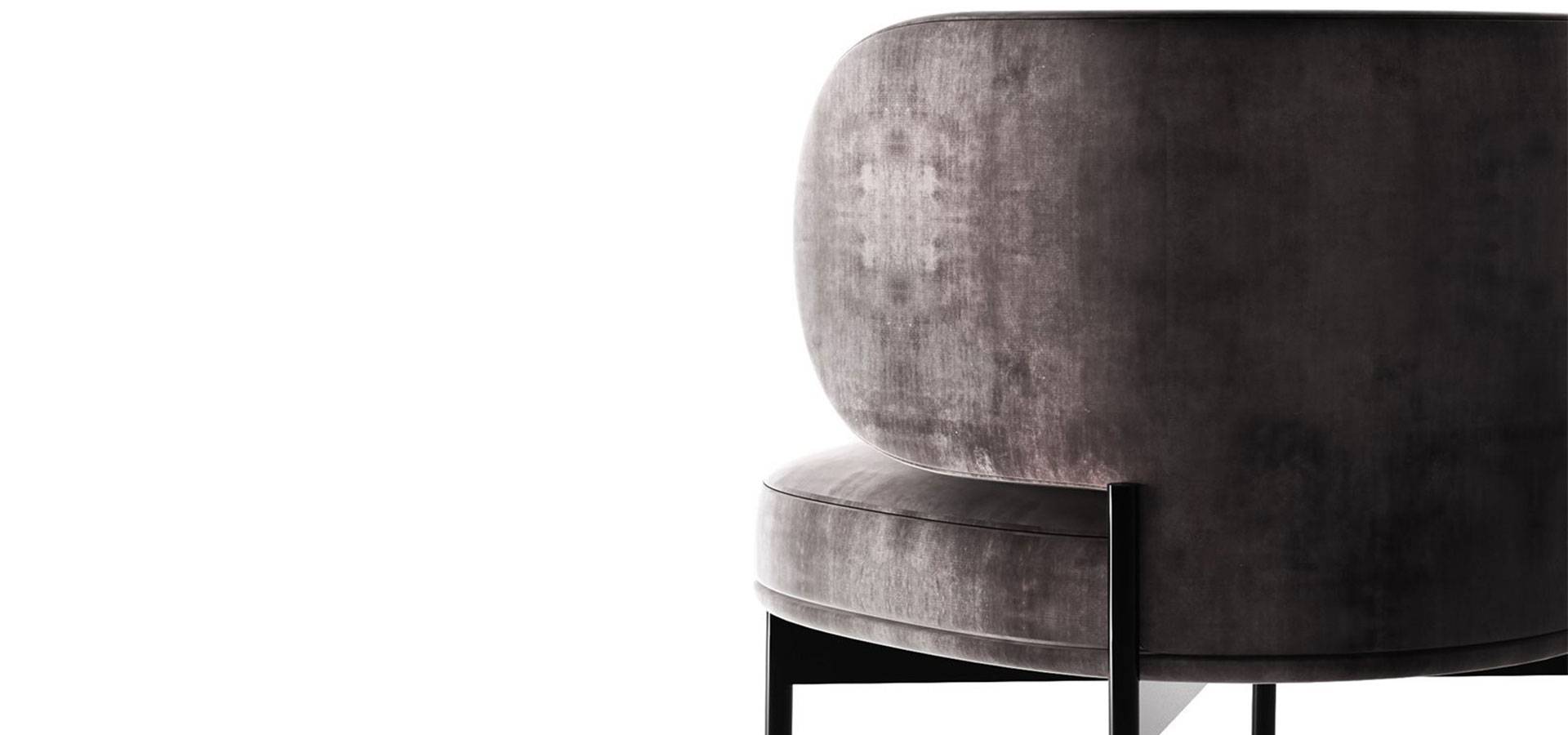 Inside structure made of wood and by-products. Padded with non-deformable fire-resistant polyurethane foam in various densities and fire-resistant polyester fiber. Metal base with a "warm grey" lacquer finish. Fabric or leather coverings are available as samples. Cover is not detachable.