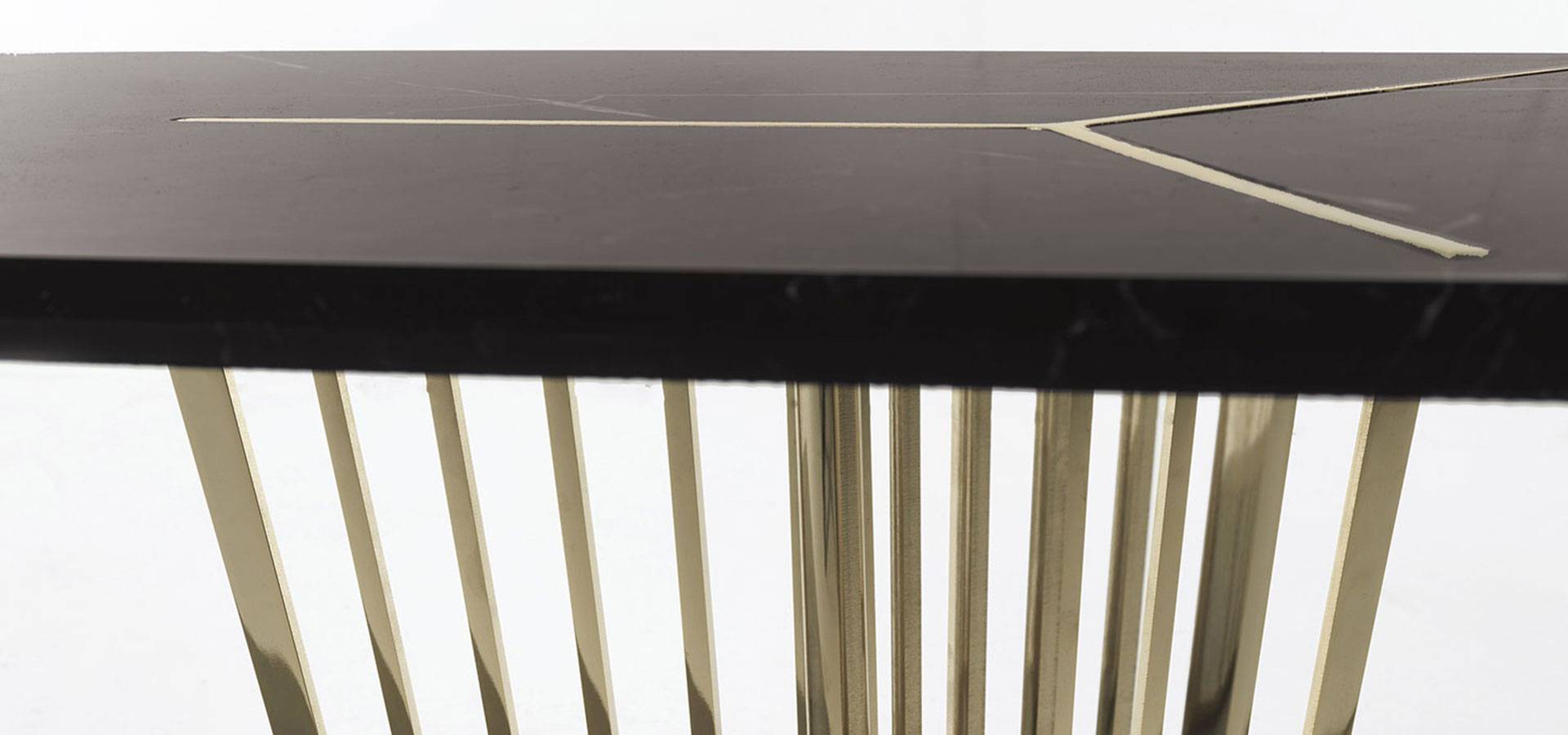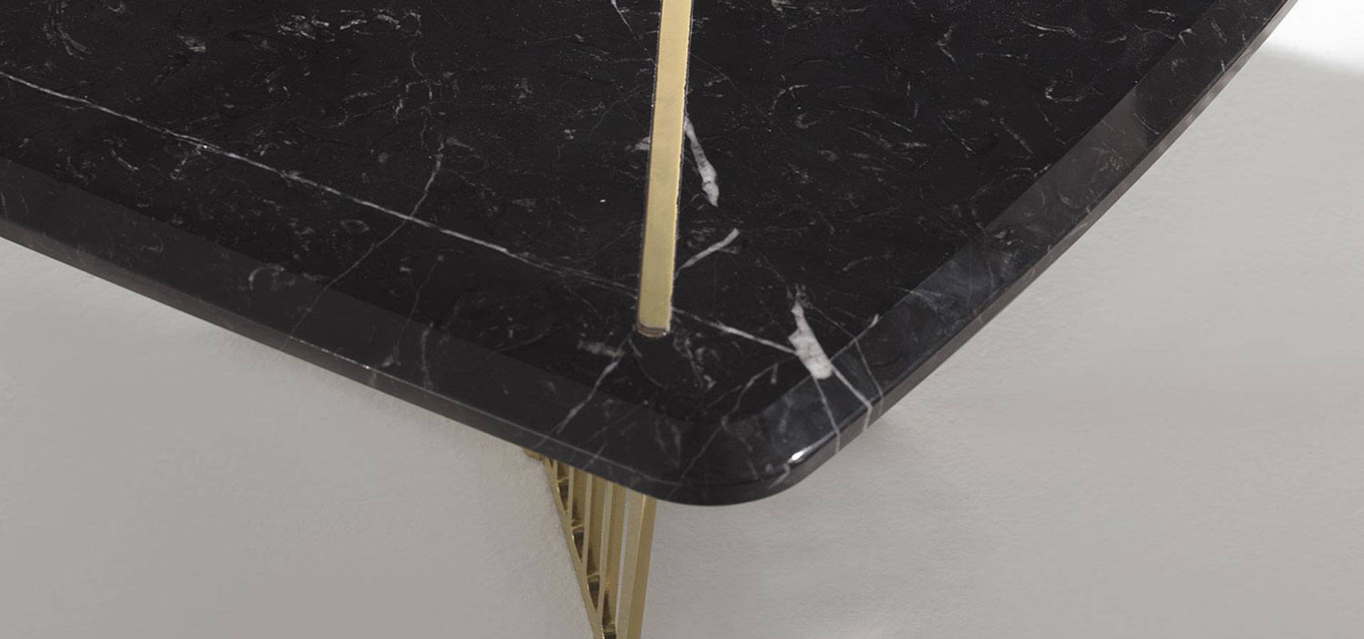 The Alfieri coffee table combines lightness and solidity, an oxymoron that works. A vertical pattern distinguishes this metal foundation, which alternates solids and voids. Marble, a valuable and refined material, is used for the top, which comes in various sizes. The inlay on the top echoes the lines of the base creating a visual illusion of continuity, which creates an unexpected final result. The Alfieri coffee table's elegant and polished design effortlessly decorates both the living and sleeping rooms.