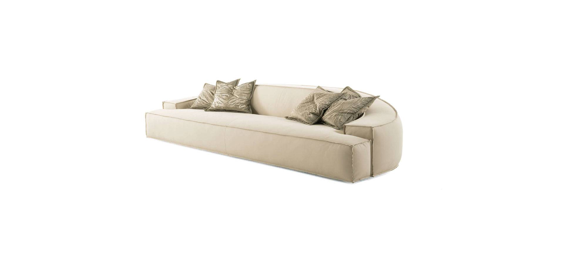 The soft leather upholstery in a delicate shade of beige with decorative stitching highlights its simple design and understated elegance, and the cushions by designer Fausto Puglisi with animal prints – declined this year in neutral shades for a refined tone on tone effect – complete the look by emphasizing its voluptuous volumes.