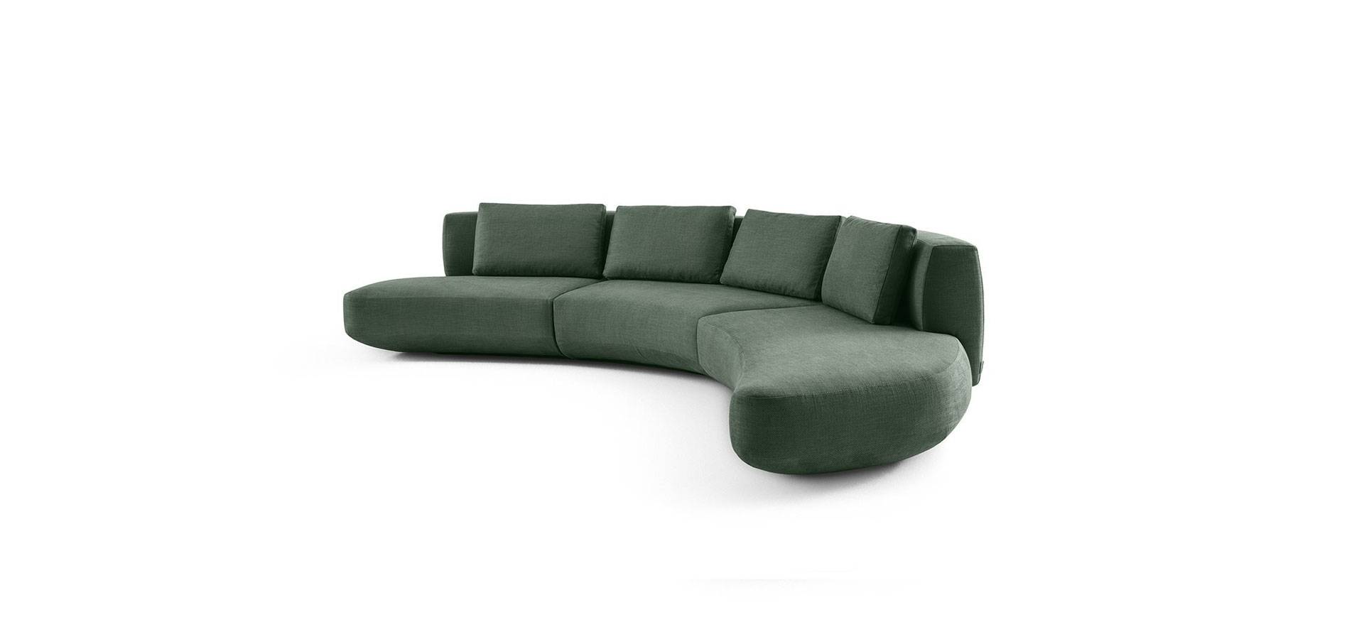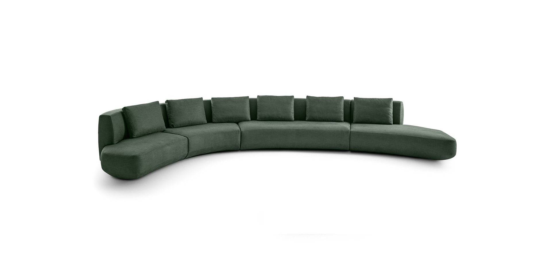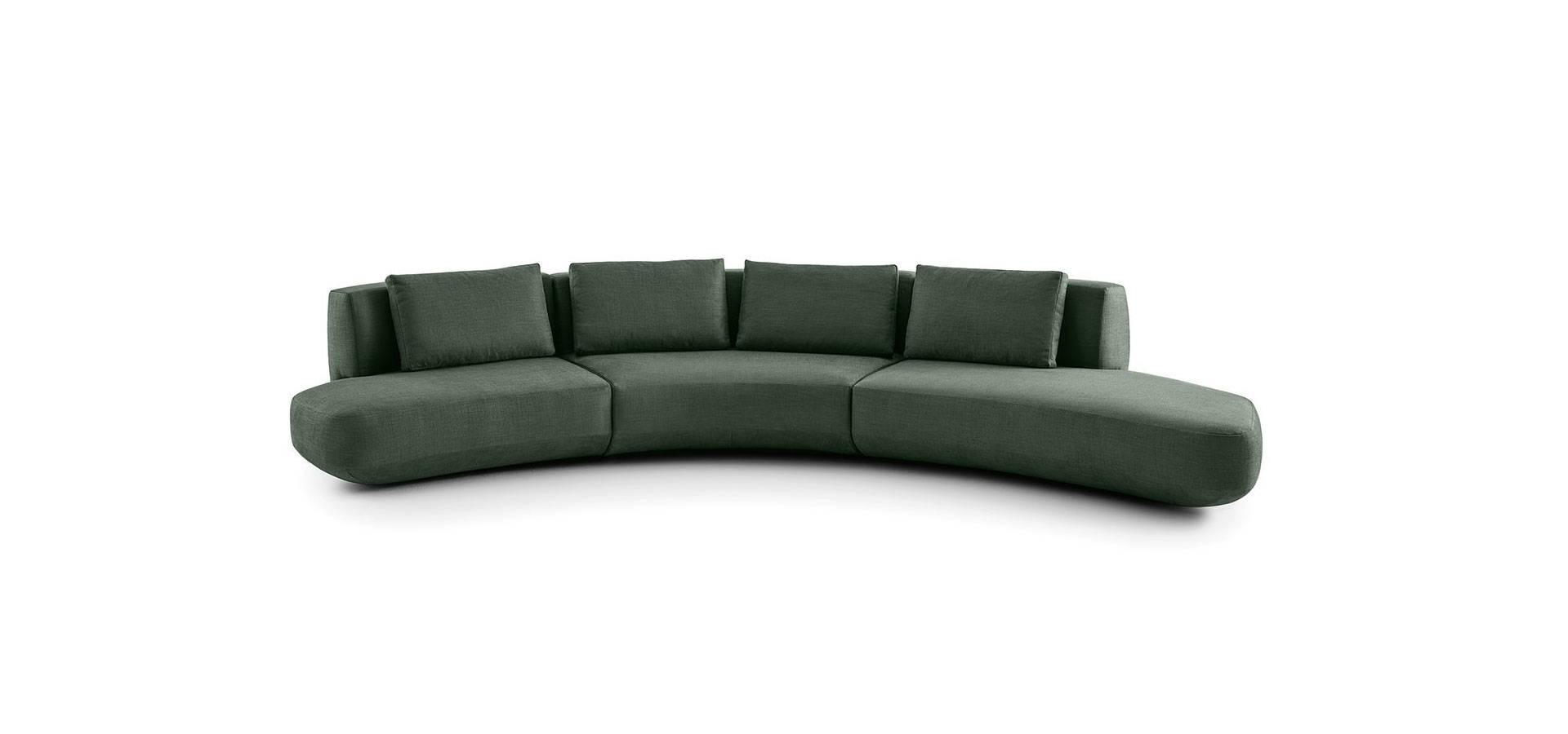Internal wood and derivatives construction for modular sofa. Padded with fireproof polyester fiber and non-deformable polyurethane foam of various densities (CAL117). MDF mass base in black. Upholstery in the samples' hues is available in fabric or leather. Except in Cat. L1, L2, and customer/COL leather, everything is completely detachable. The back cushions are made of polyester fiber. On request, polyester fiber decorative cushions are available.