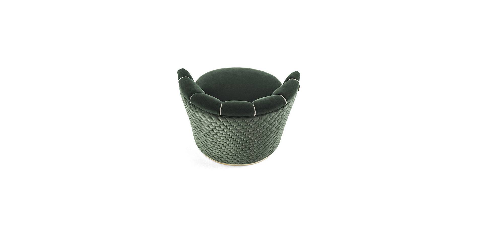 The Bianca armchair is comfortable and inviting. The seat is spacious and welcoming, and the backrest is accentuated by the tailoring craftsmanship, which includes a specific blanket on the outside and soft rounded bands with a profile on the inside. By contrasting the crisp and defined lines of the base, the final effect portrays softness. A comfy and unusual armchair with a balance of uncommon craftsmanship.