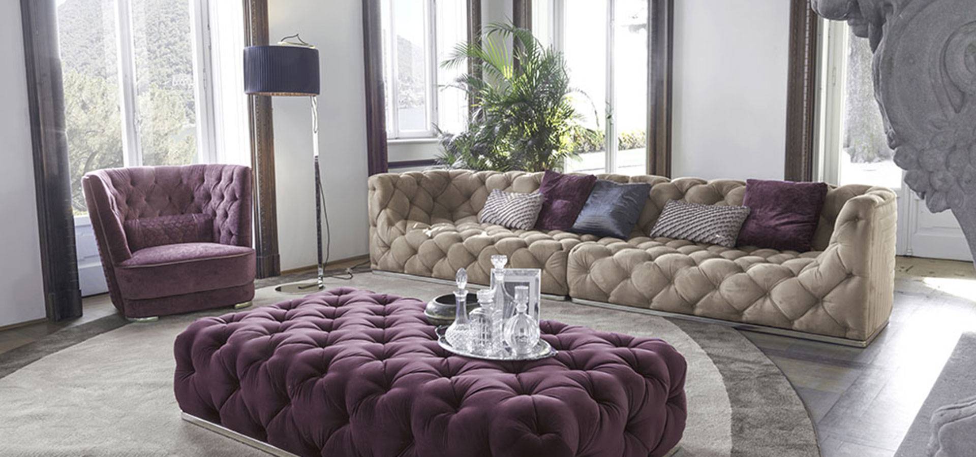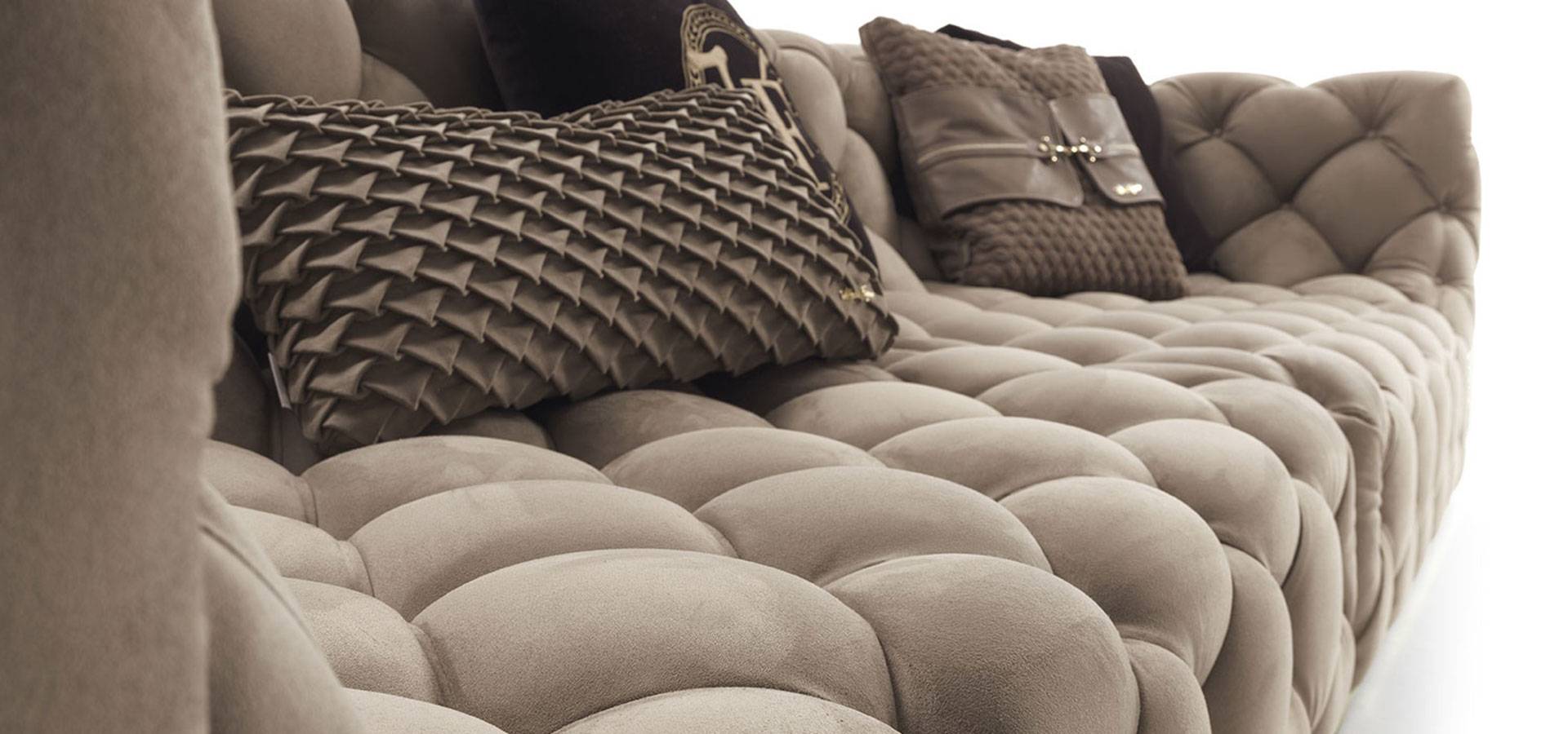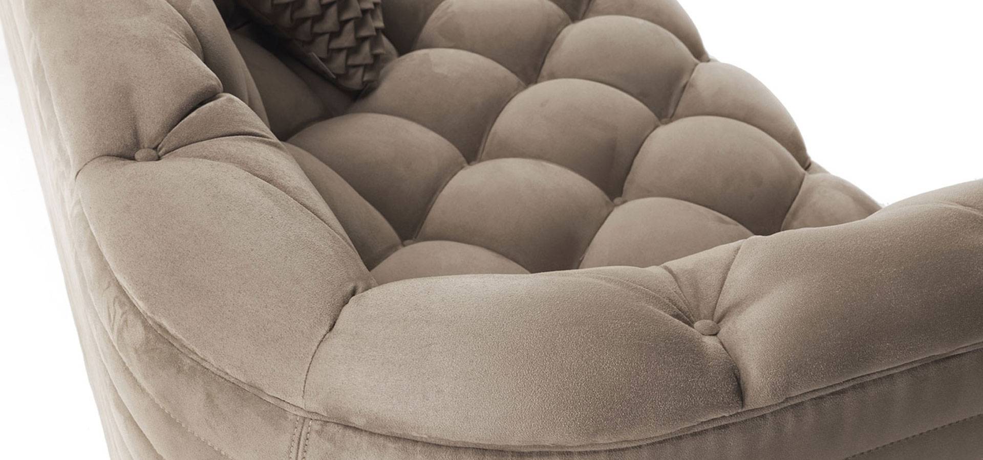 The Caracciolo sofa, with its distinct and familiar shape, is a masterwork of craftsmanship and dexterity that finds its pinnacle here. The rounded curves of the buttons create soothing waves on which to lean, contrasting the outward structure with the quilting's strict lines that encircle the sofa's back. The Caracciolo couch comes in a variety of configurations, including closed two or three seater sofas, modular elements with central elements, end elements, chaise longue, and dormeuse.