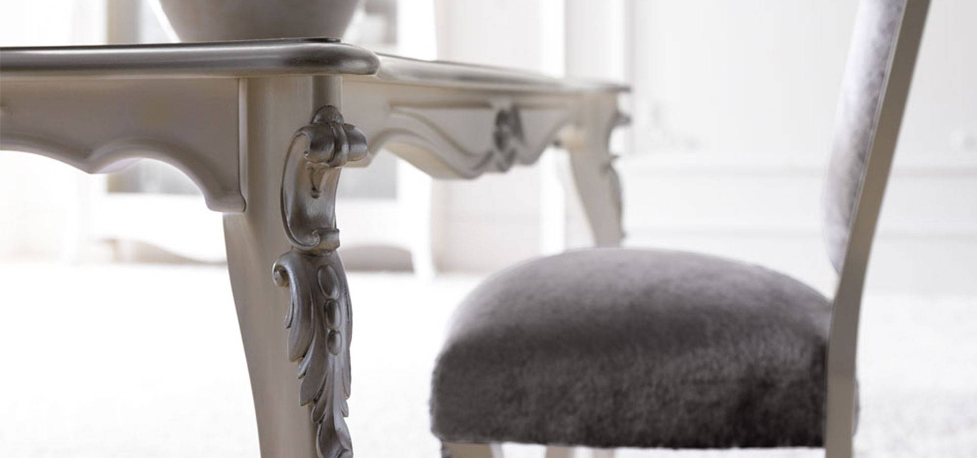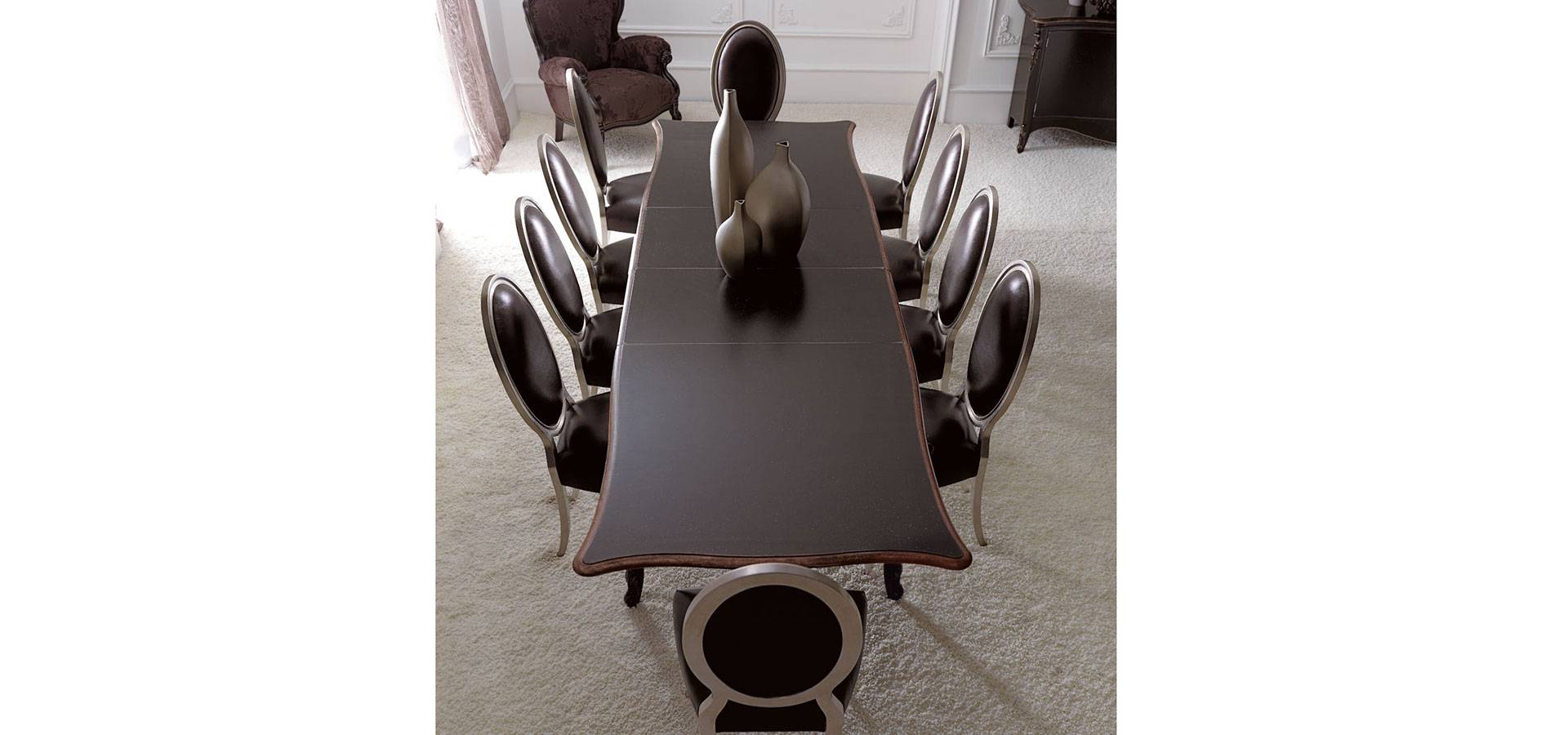 A traditional wooden table with elegantly carved legs, a curved top, and fabulous and distinctive embellishments to hand-finish in complementing colors or gold or silver leaf. Charlotte is an elegant dining table that would complement any dining space with flair and freshness. Also available in a variety of finishes and with an extension.