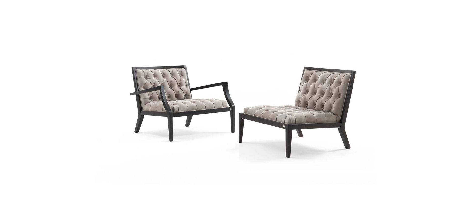 The Donà armchair elevates a classic form by incorporating a soft handcrafted capitonné padding into the square section solid wood construction. A quilted insert is added to the backrest, enhancing the collection's customizing capabilities. As a result, the Donà armchair becomes a versatile piece of furniture capable of adding contemporary classicism to any space.