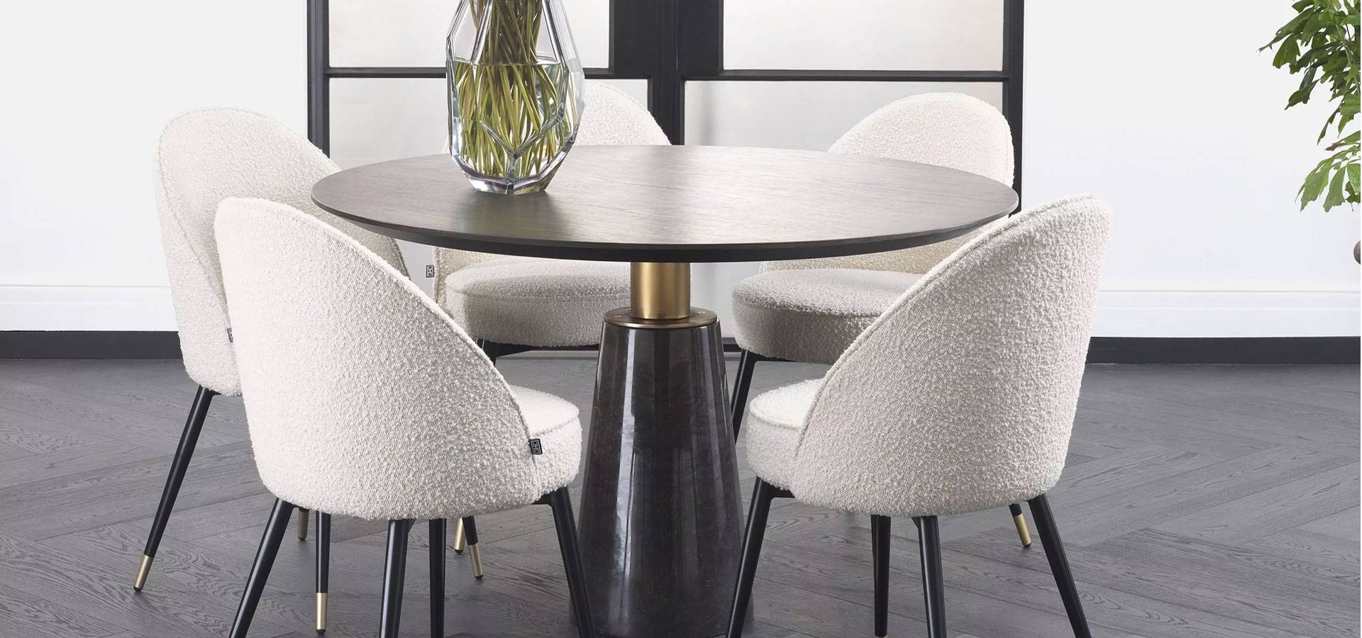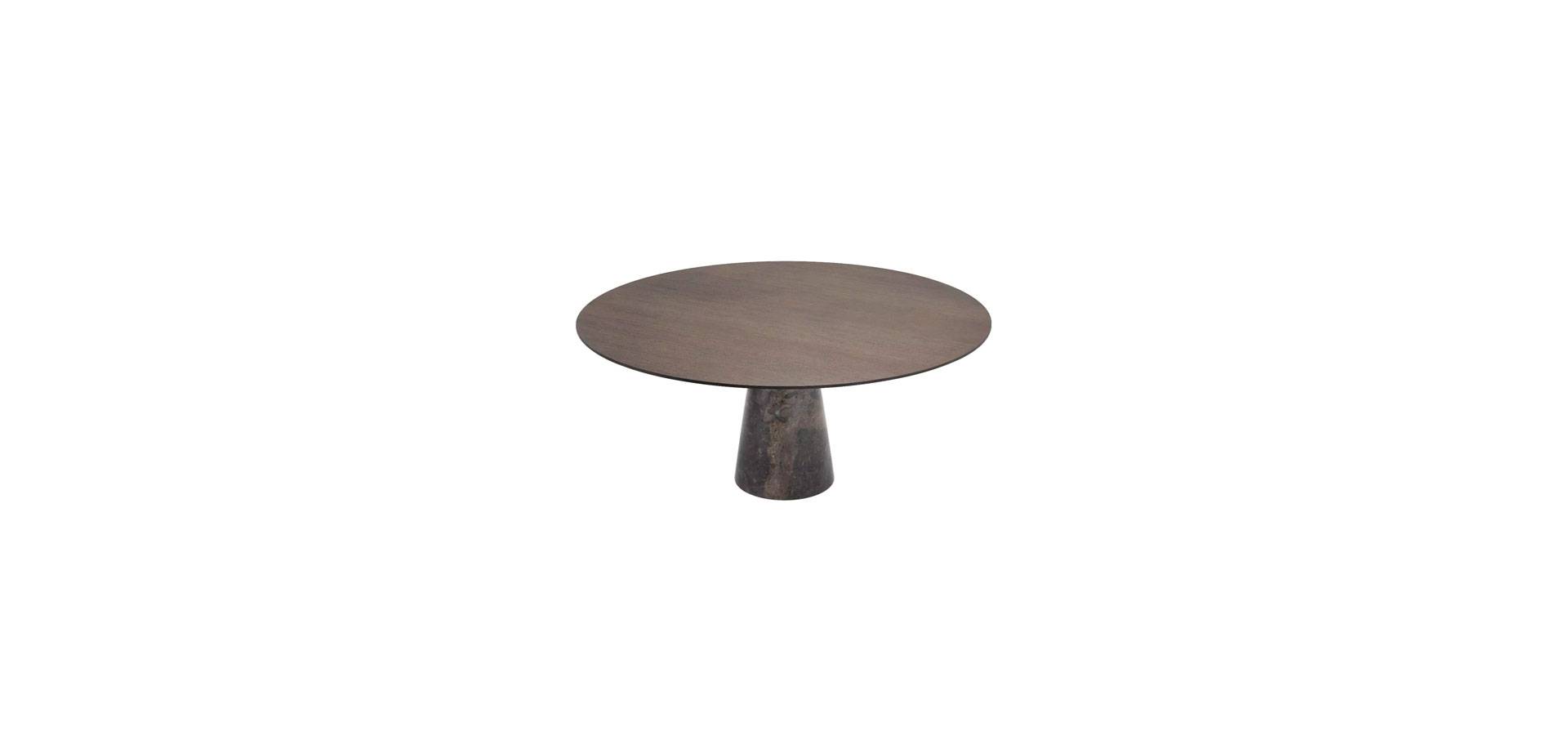 The Genova Dining Table will help you create a modern and sociable space in your home. This round dining table is a perfect match for your current décor, with a mocha oak veneer tabletop and a grey marble base.