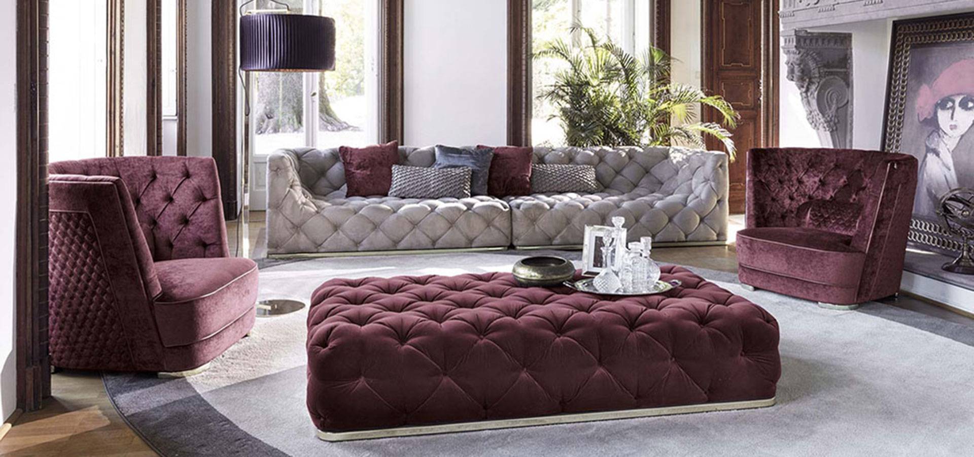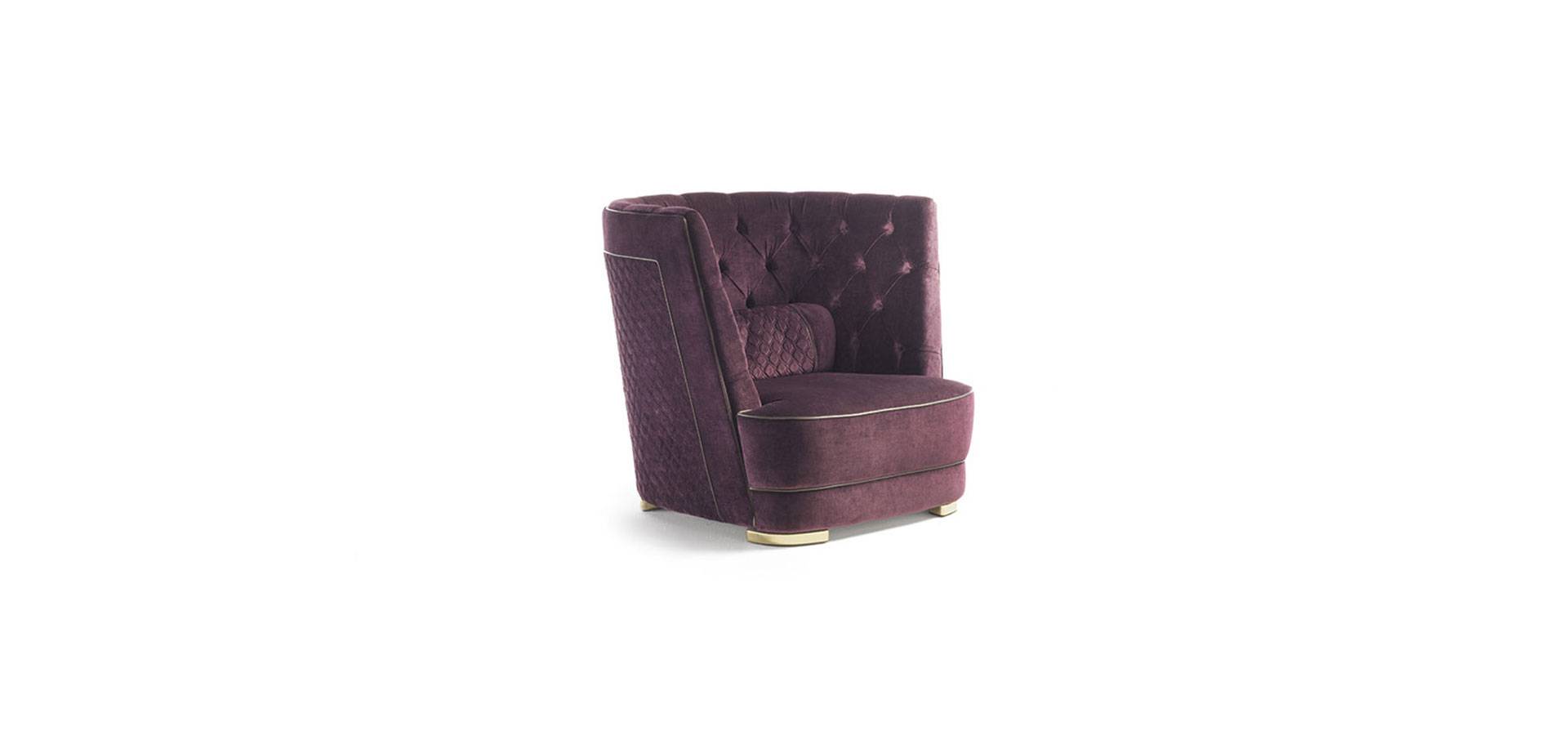 The Greppi High Capitonné armchair is a classic, timeless piece with well-balanced dimensions that embrace you. The quilted inlays on the outside of the backrest, framed by a profile, provide a nostalgic touch to the handcrafted capitonné technique. A timeless object that may be used to beautifully furnish both the bedroom area and a designated living area corner.