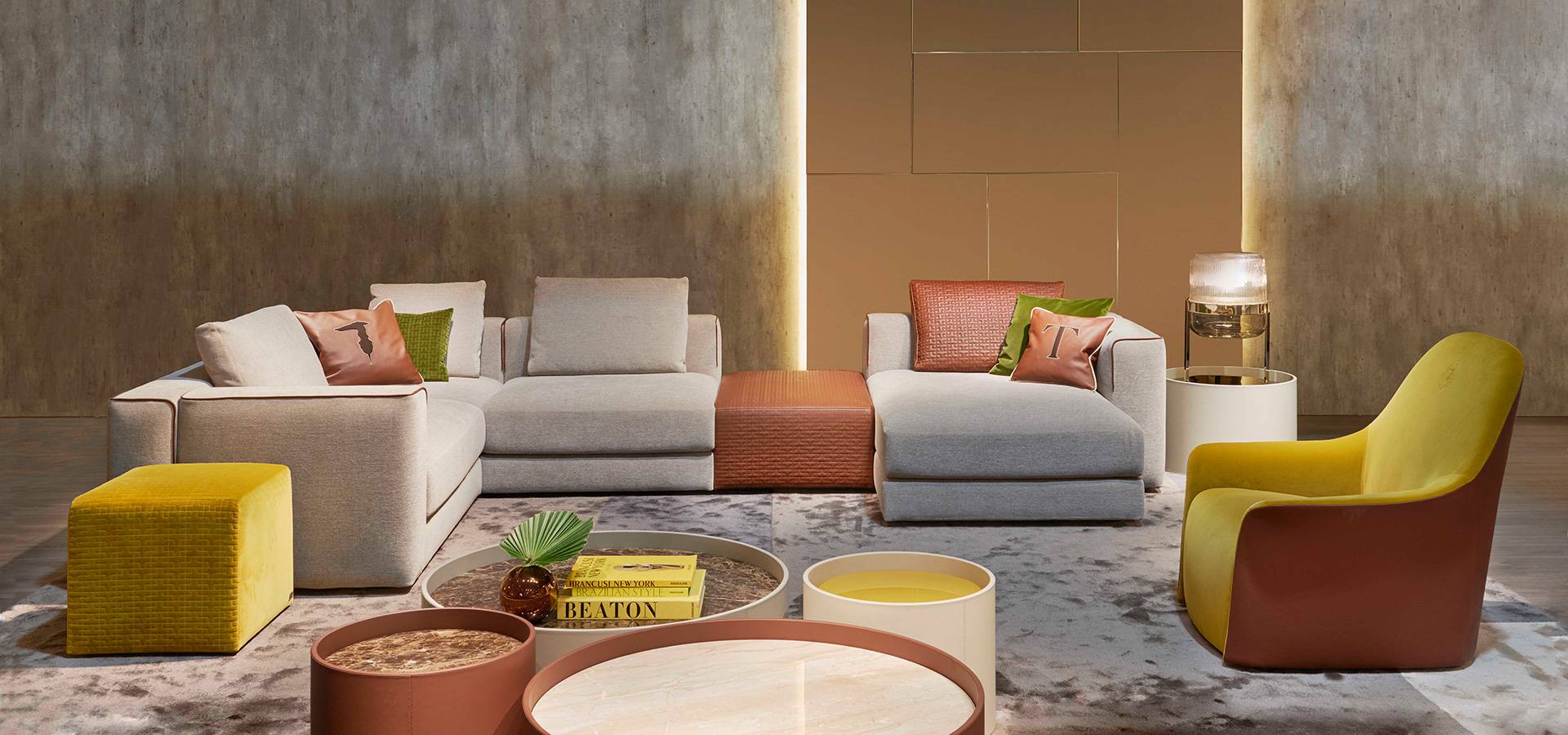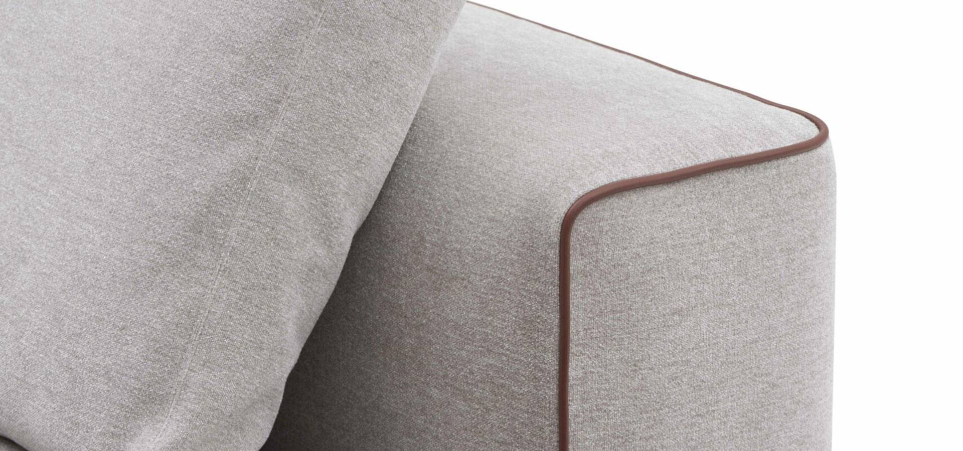 Happ is a modular couch system with a modern style. The softened corners of the back and armrests, as well as the leather piping that defines the shape, soften the rational lines.