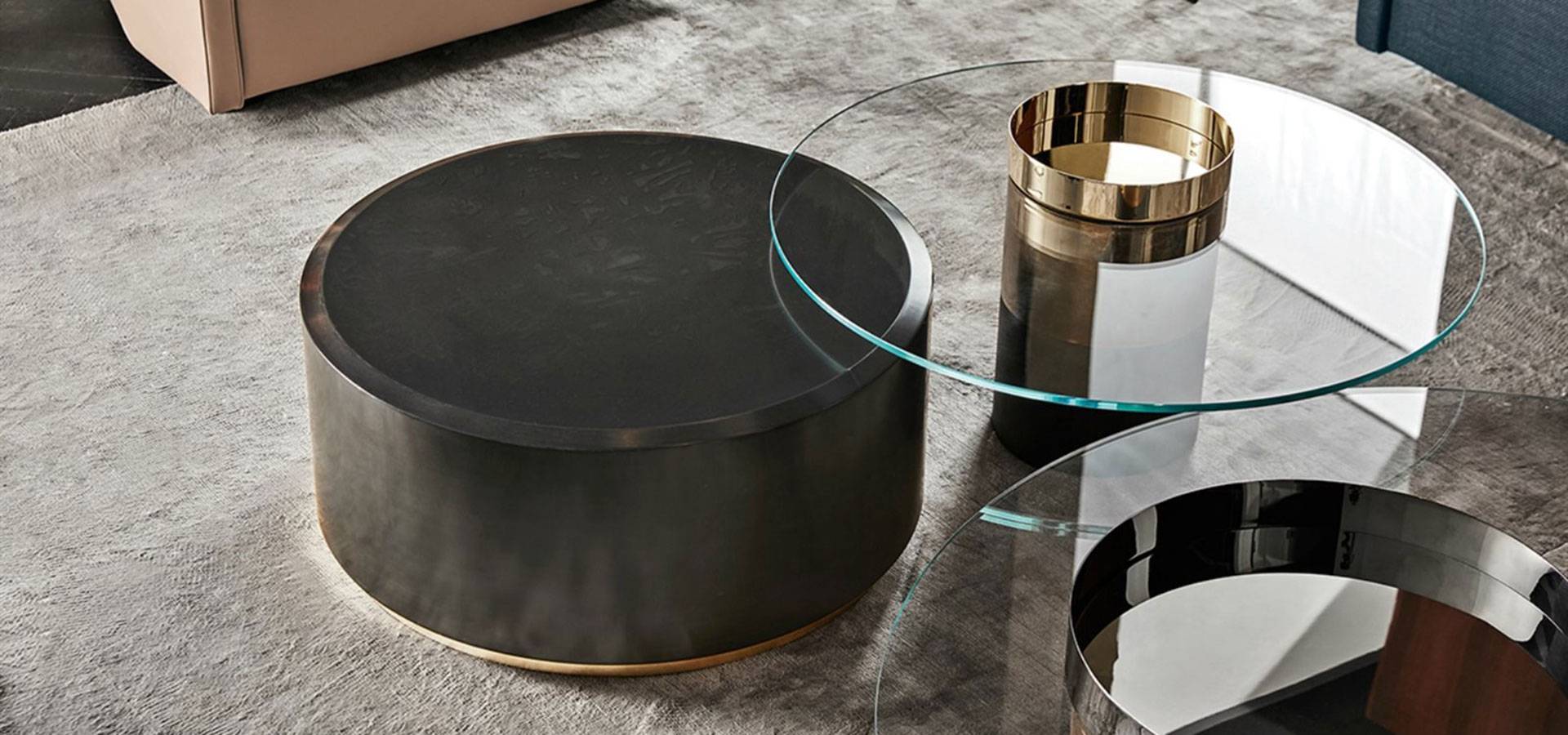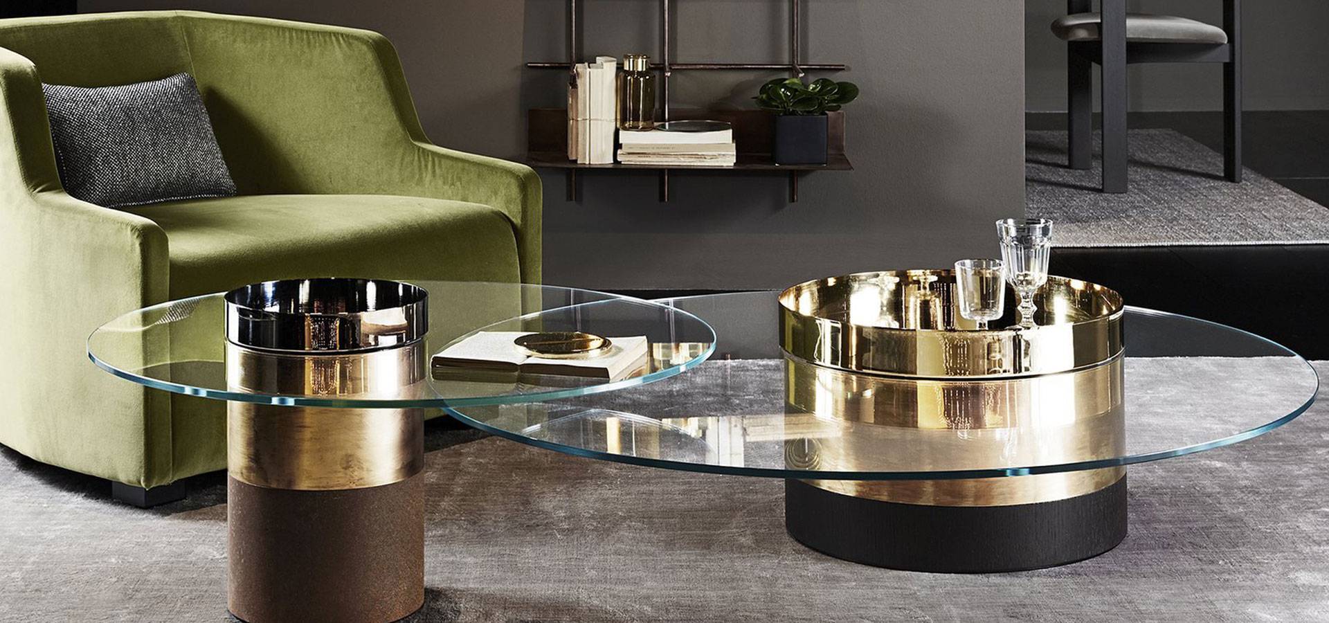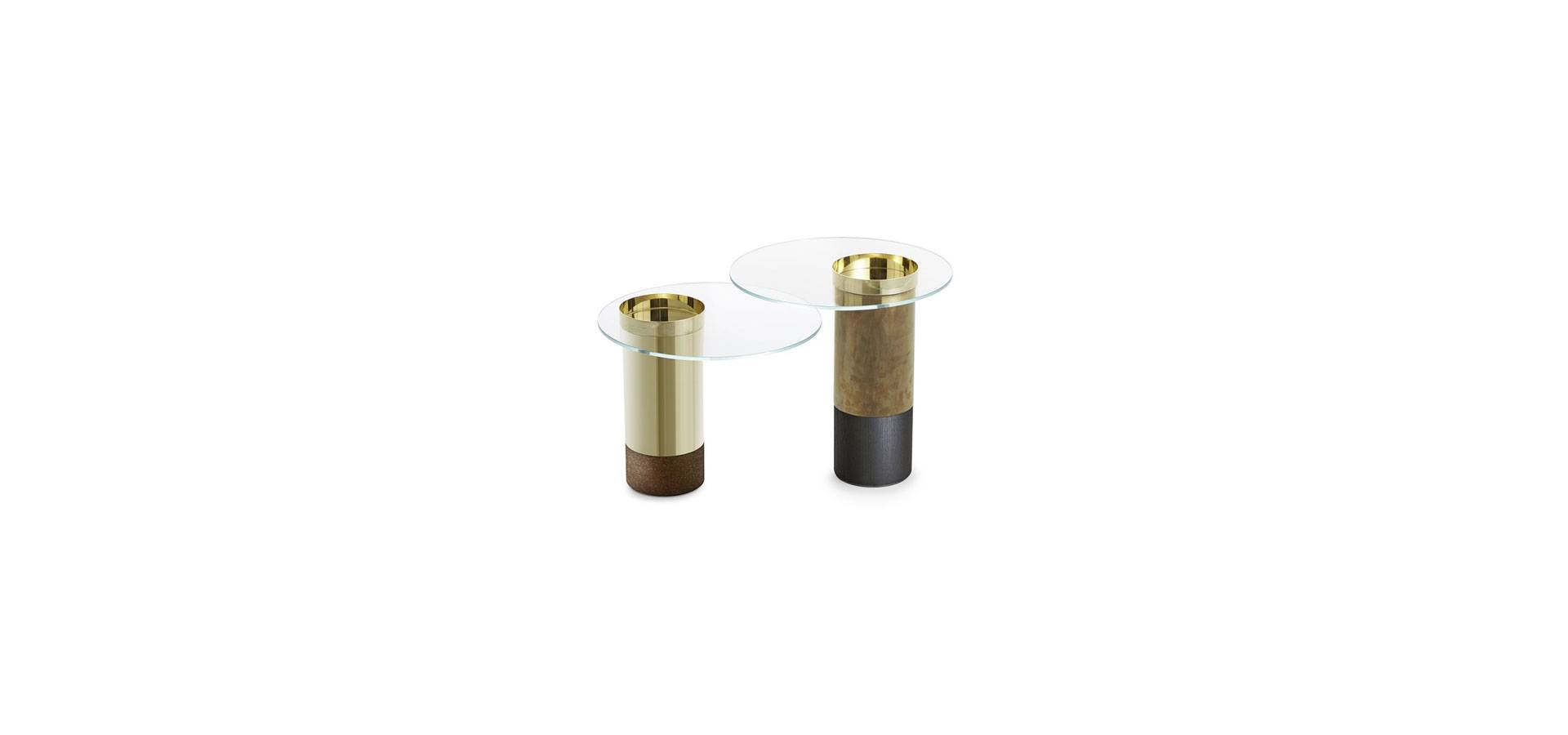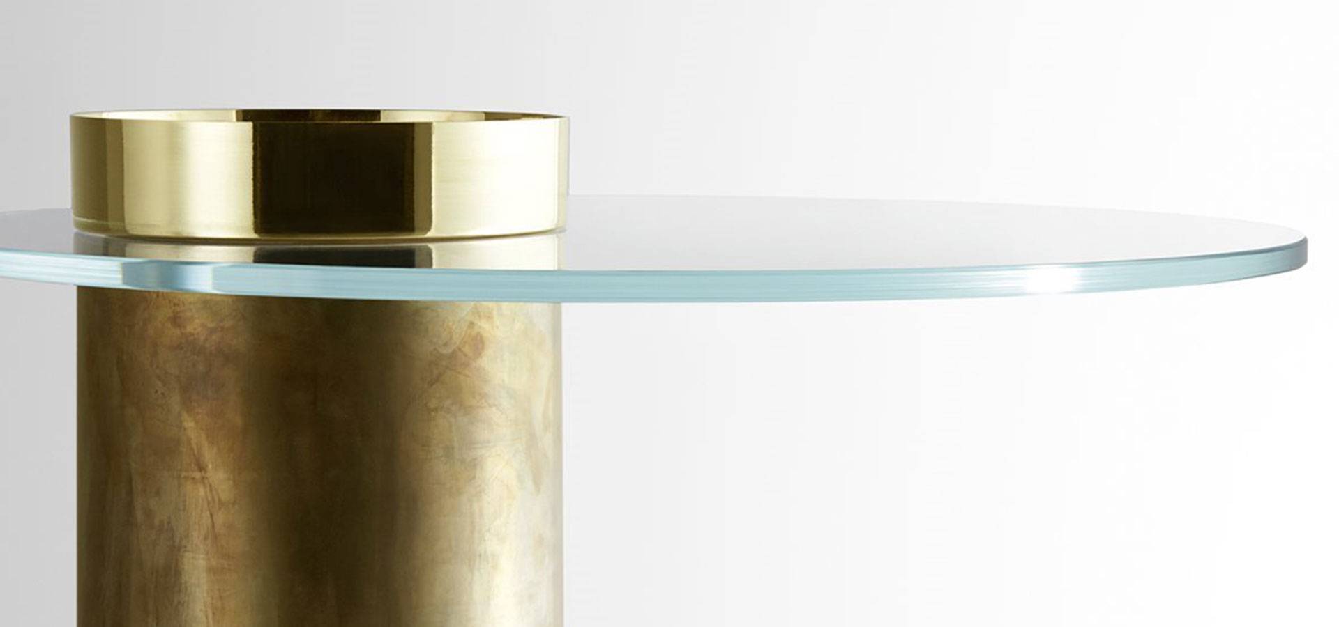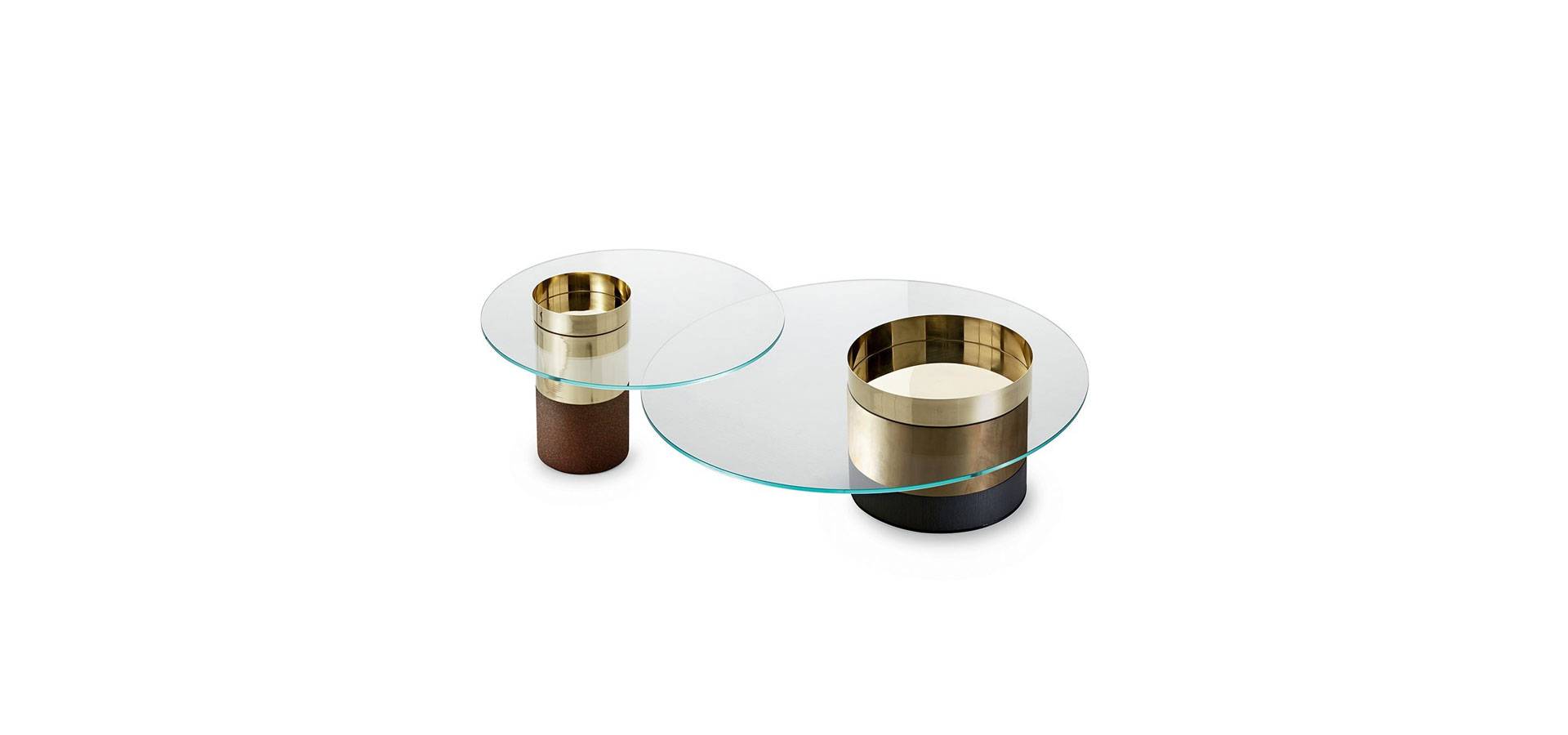 10mm extralight tempered glass top on coffee table. Wooden base, black open pore or rust lacquered. Metal parts can be bright brass, hand polished brass, coppered brass, or black chromed.