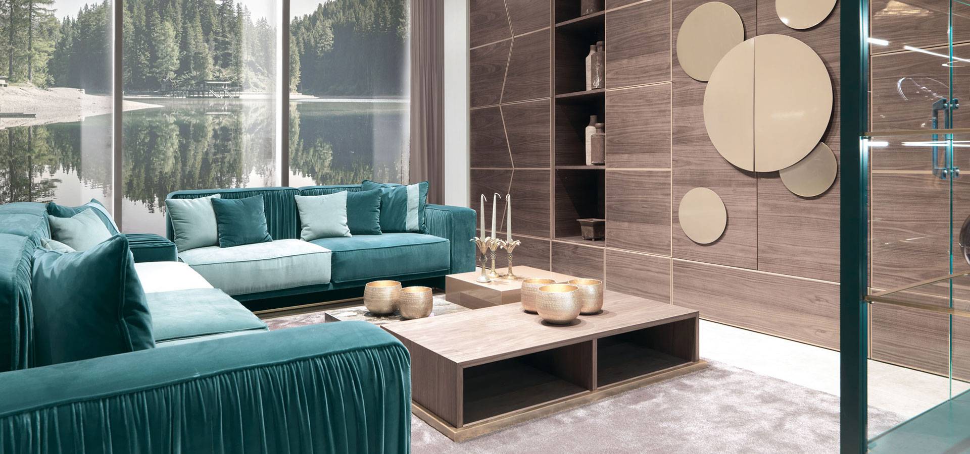 The supporting structure is composed of wood and is hand-covered in a variety of textiles and leathers. Cushions made of differentiated-density polyurethane foam are covered in a variety of materials.