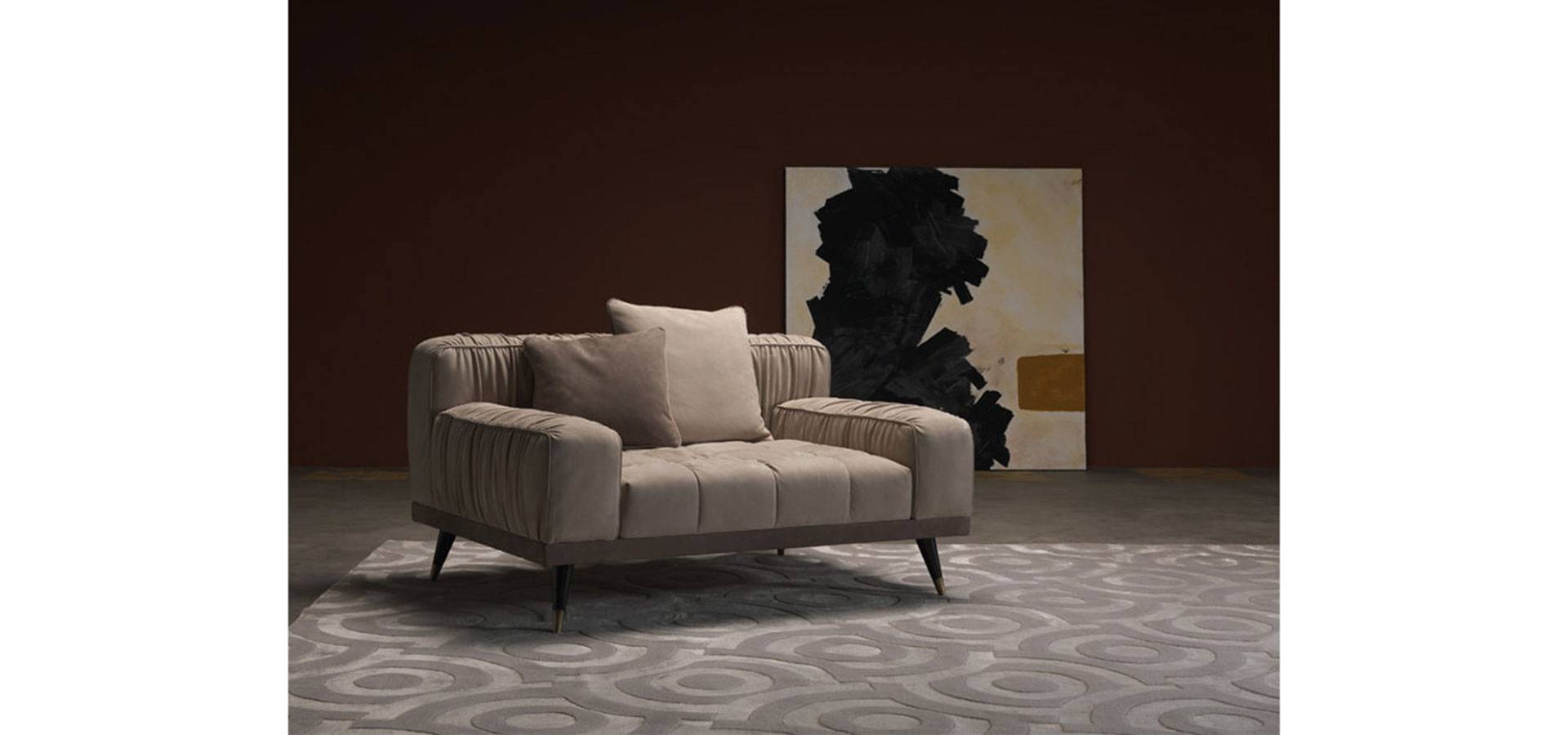 A contemporary armchair with a low backrest and precise tailoring that alternates pleated and quilted components. The Highlander armchair's exquisite silhouette and diverse design make it easy to place it in a variety of rooms, including the living room, study, and bedroom.