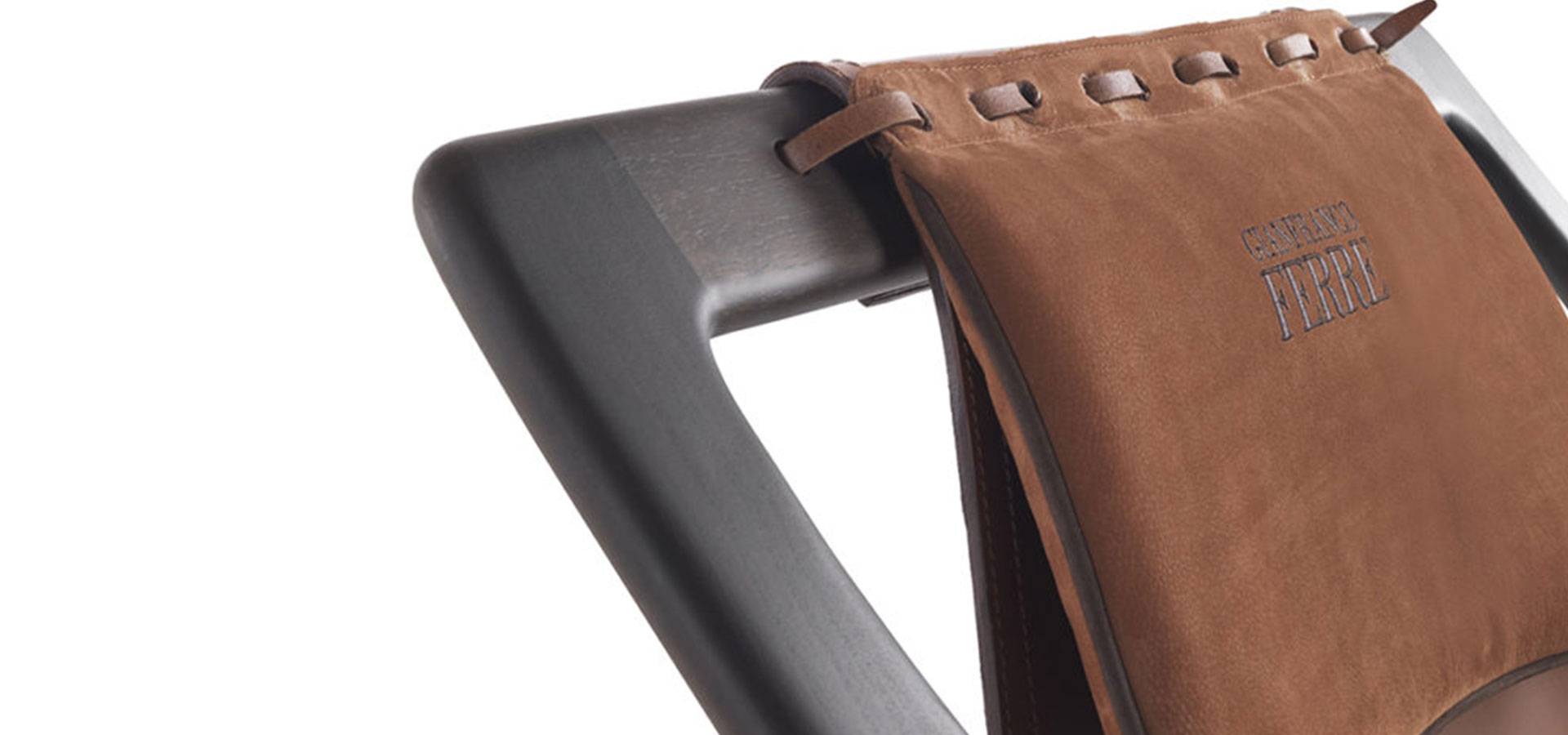 The Kalamaja armchair has a retro style and a metropolitan spirit. The solid gray tinted stained beech structure contrasts with the lightness of the suspended leather seat, which is supported by armrests with distinctive straps. A typical Mid-century style furnishing element that works well in urban decor settings.