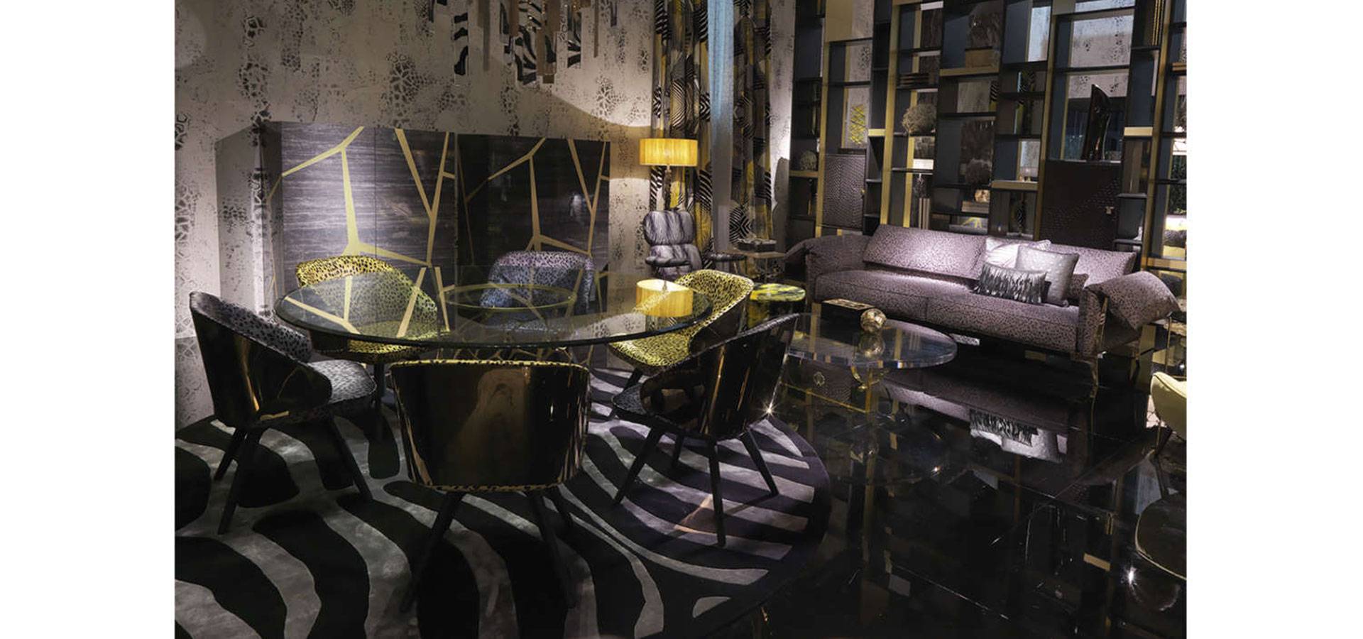 The Key West chair has an appealing design and classic lines. It has a sinuous and rounded design, a gold-finished enveloping back, and a comfy seat covered in the new Wild Jaguar print. Sensuality, warmth, and charm are the ideal components for a sensual and soothing atmosphere in your house.