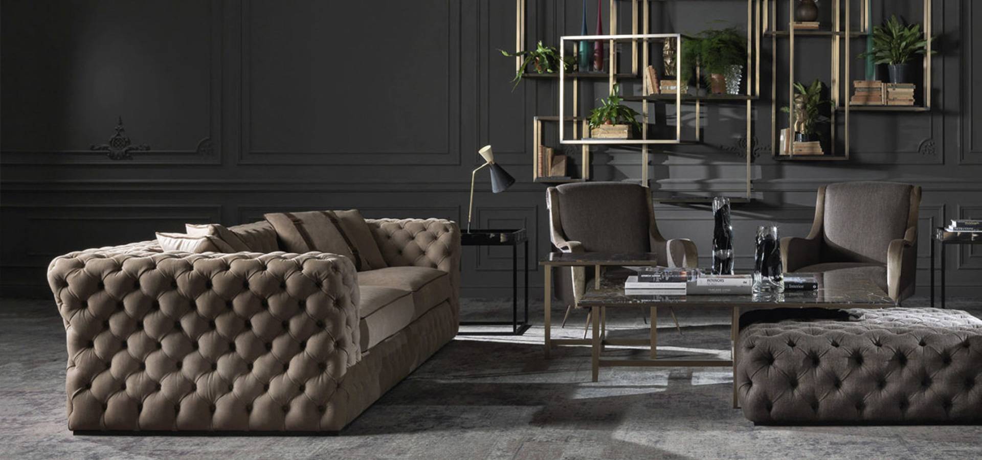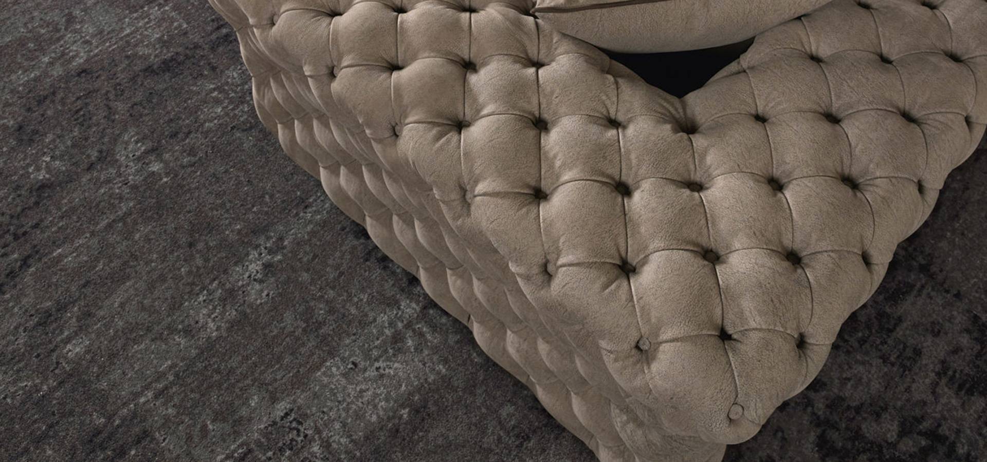 Beautifully made four-seat sofa. A classic design that blends traditional and contemporary elements with a beautiful and meticulously handmade capitonné finishing, showcasing the company's proficiency in executing exceedingly intricate fine-tailoring techniques.