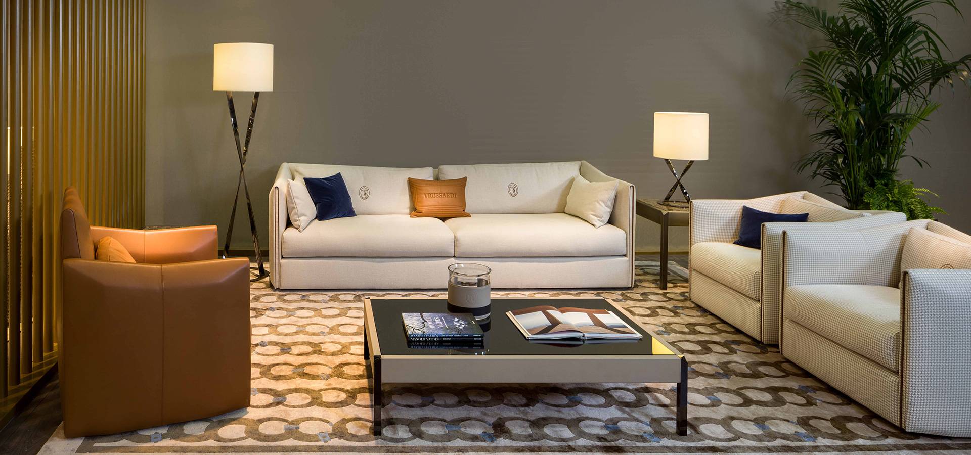 The Maryl couch and armchair reinterpret the Maison's aesthetic guidelines. The piping incorporated into the armrest emphasizes its uniqueness and thin shape, complementing the fragmented, asymmetrical lines of a project that provides a high level of comfort.